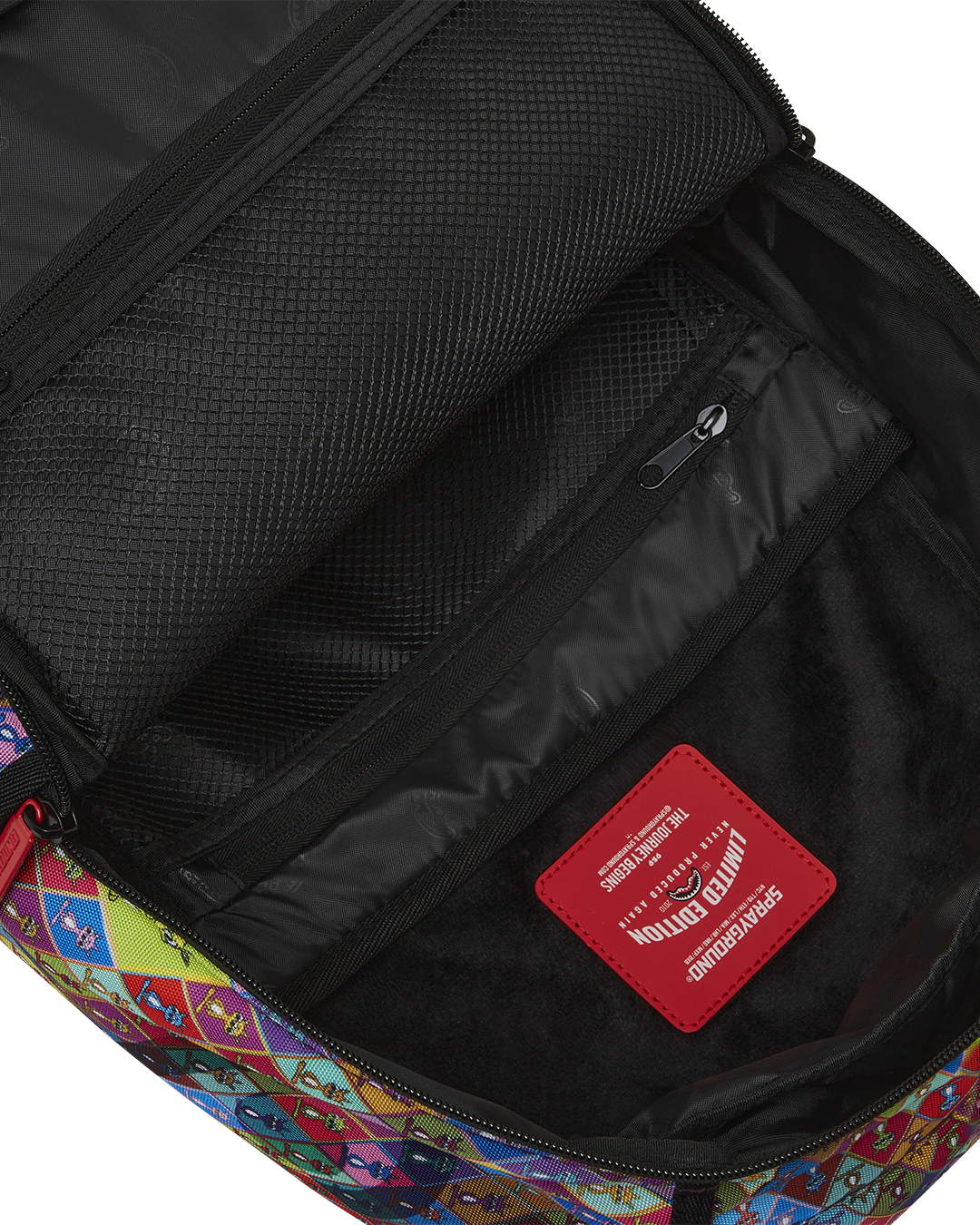 Dimensions: 18″ x 6″ x 11.5″ ∙ Front zipper pocket ∙ Side pockets ∙ Zippered Stash pocket ∙ Ergonomic mesh back padding ∙ Adjustable Straps for custom sizing ∙ Nylon Zippers with Metal Hardware ∙ Metal “Sprayground Authentic” badge ∙ Slide through back sleeve connects to Carry on luggage to free your hands