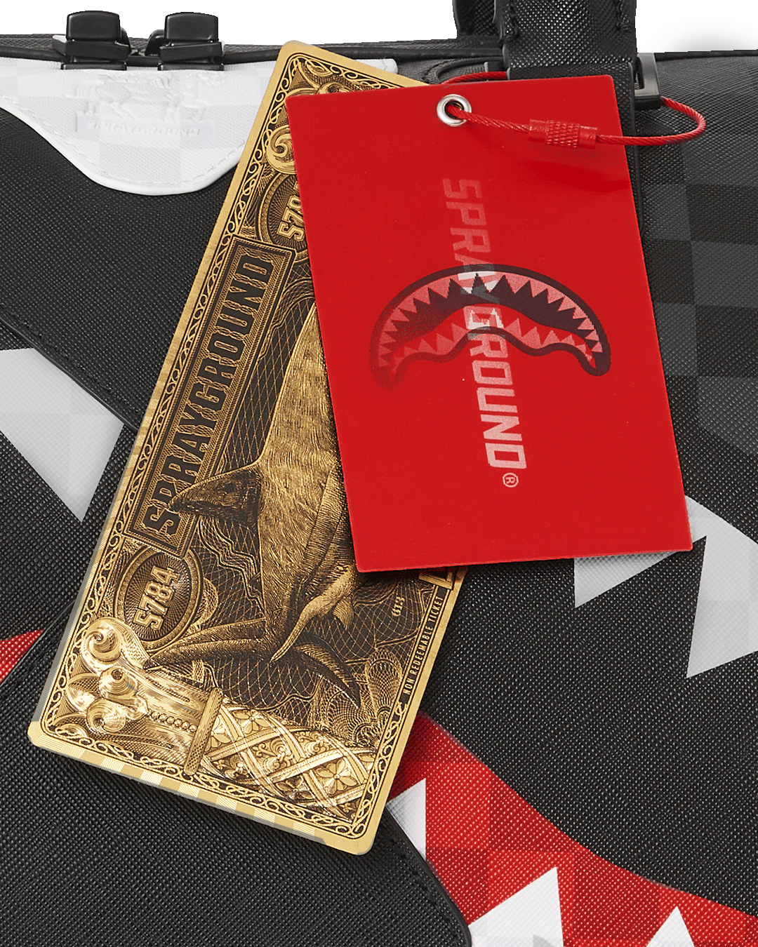 Dimensions: 20″ x 10″ x 10.75″ • Metal zipper pocket• Back Zippers •Zippered sneaker pocket • gold zippers • Adjustable Straps for custom sizing •Metal Zippers with Metal Hardware • bag of Sprayground money