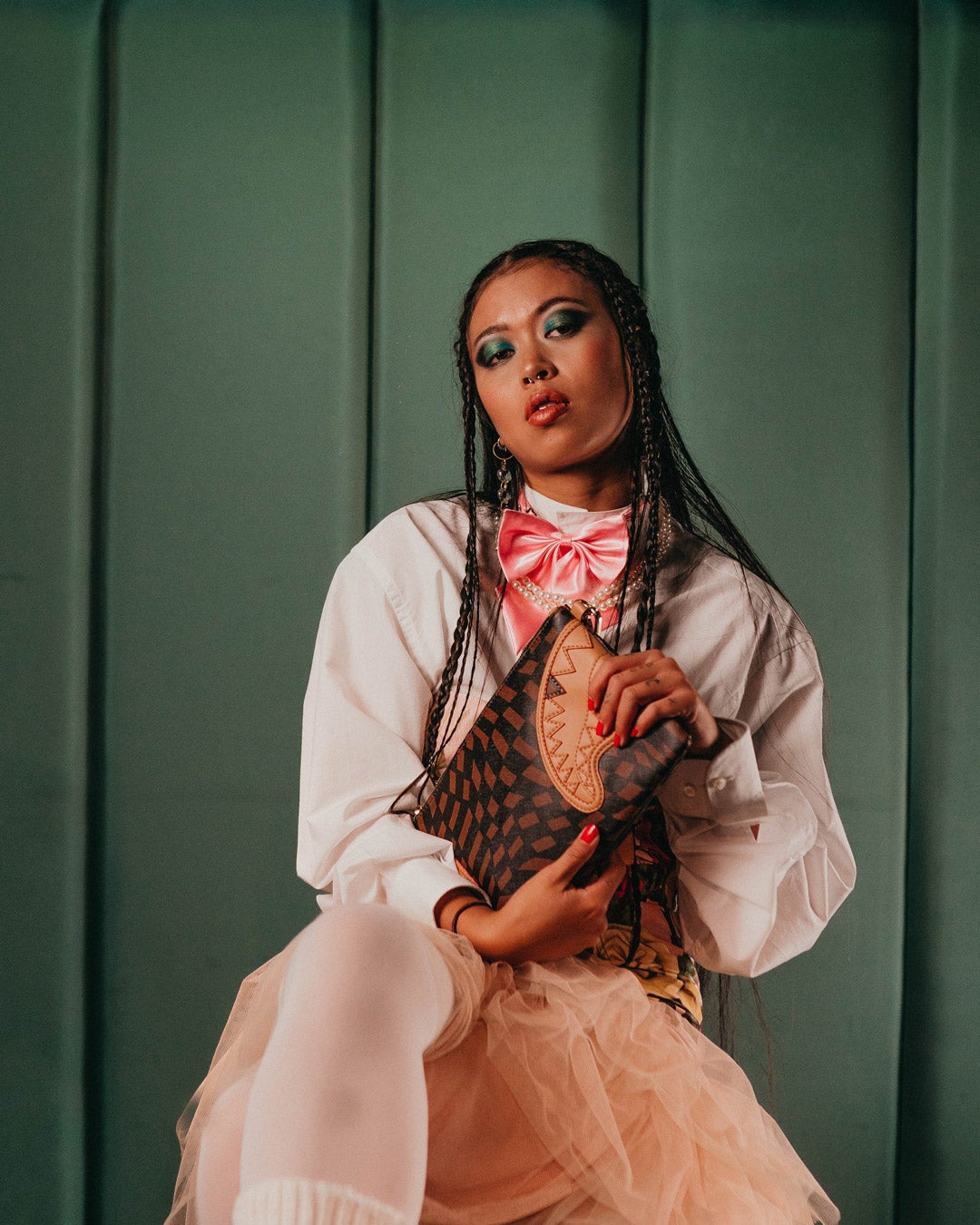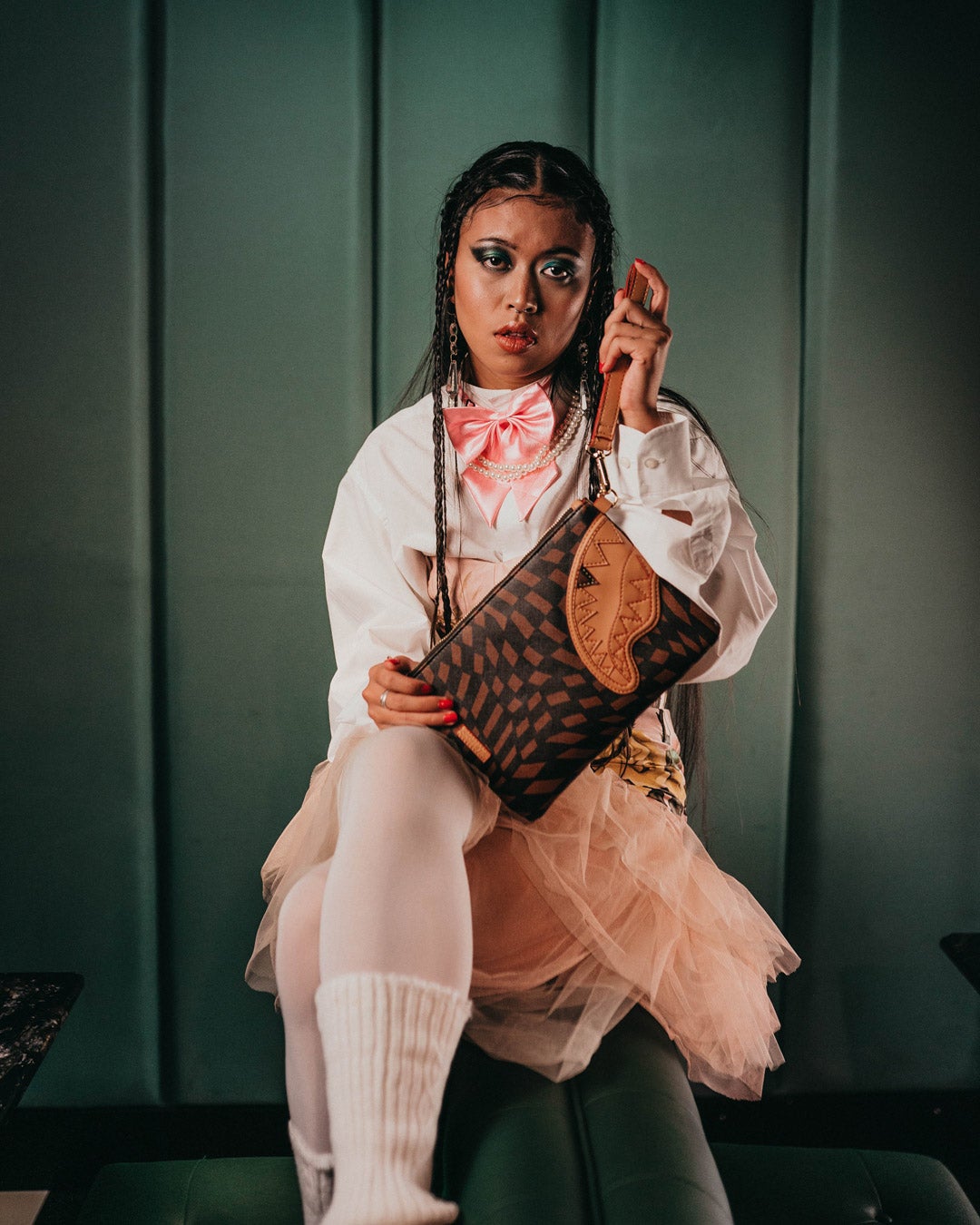Pouch with removable wristlet strap, Handle on front panel, Zip Closure