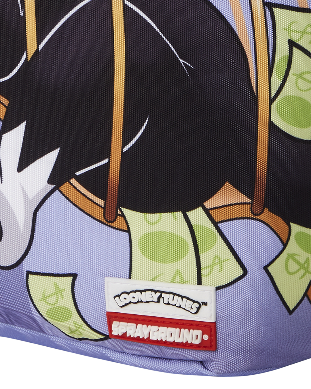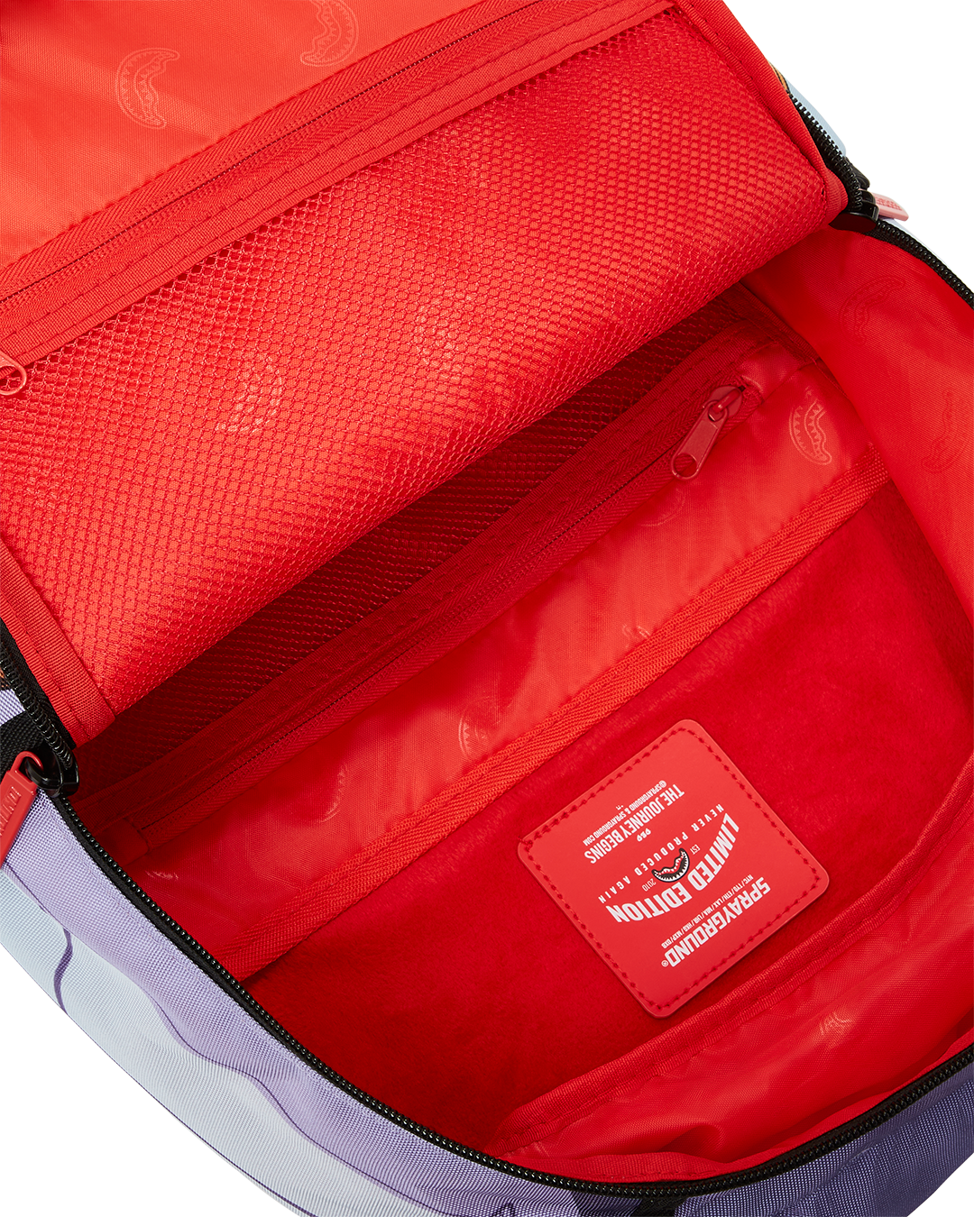 Dimensions: 18″ x 6″ x 11.5″ • Front zipper pocket • Side pockets • Zippered Stash pocket • Separate velour sunglass compartment • Ergonomic mesh back padding • Adjustable Straps for custom sizing • Green zippers with metal hardware • Metal “Sprayground Authentic” badge • Slide through back sleeve connects to carry on luggage to free your hands