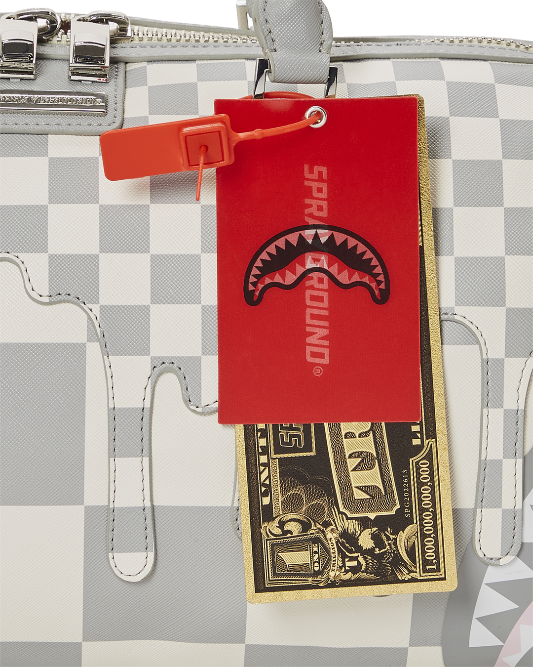 Dimensions: 8″ x 7.5″ x 13″ • Metal zipper pocket• Back Zippers •Zippered sneaker pocket • gold zippers • Adjustable Straps for custom sizing •Metal Zippers with Metal Hardware • bag of Sprayground money