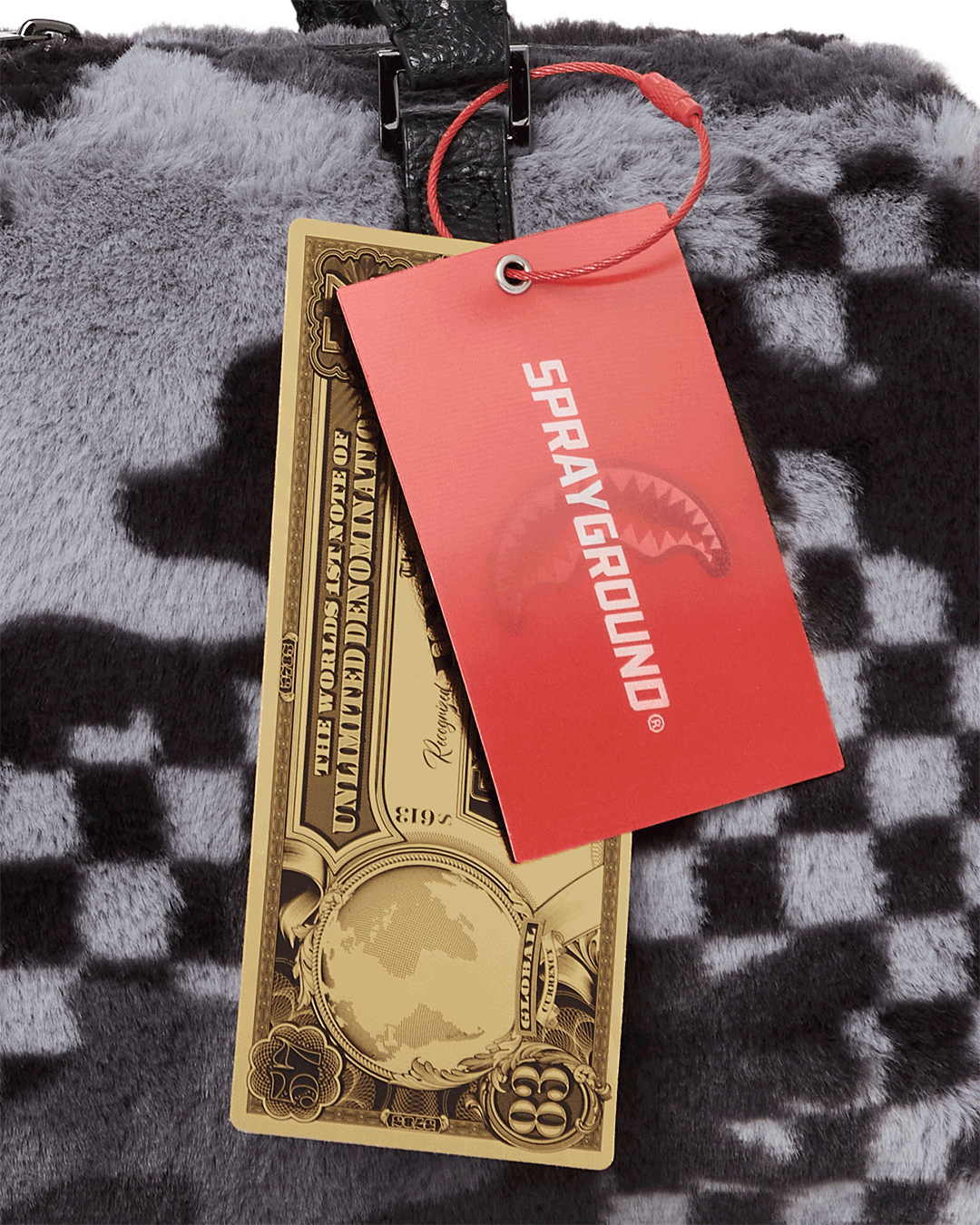 Dimensions: 8″ x 7.5″ x 13″• Metal zipper pocket• Back Zippers •Zippered sneaker pocket • gold zippers • Adjustable Straps for custom sizing •Metal Zippers with Metal Hardware • bag of Sprayground money