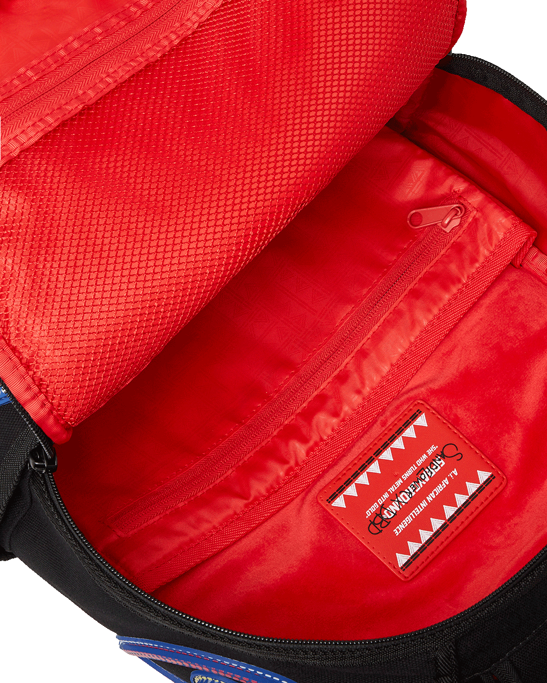 Dimensions: 18″ x 6″ x 11.5″ • Front zipper pocket • Side pockets • Zippered Stash pocket • Separate velour sunglass compartment • Ergonomic mesh back padding • Adjustable Straps for custom sizing • Gold zippers with metal hardware • Metal “Sprayground Authentic” badge • Slide through back sleeve connects to carry-on luggage to free your hands