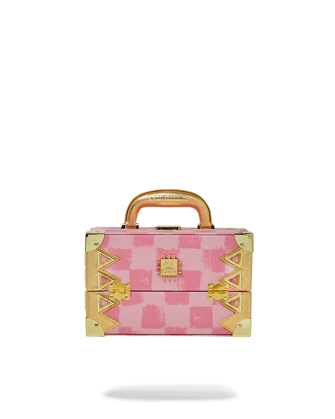 Pink velour lining, Tiered shelving, removable tray,  interior mirror.