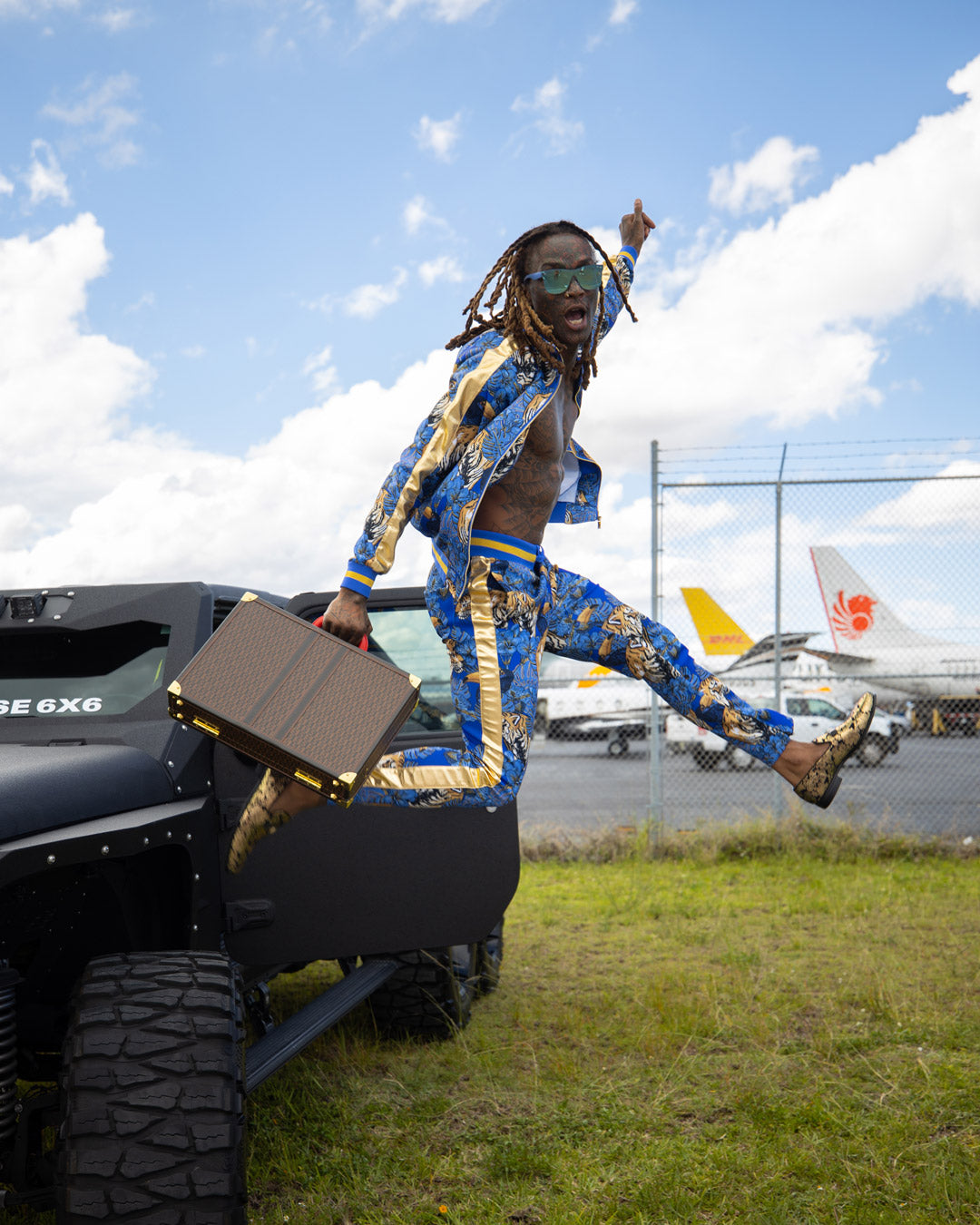 Customized Red Satin lining with Embossed Shark logo and Vegan leather trims