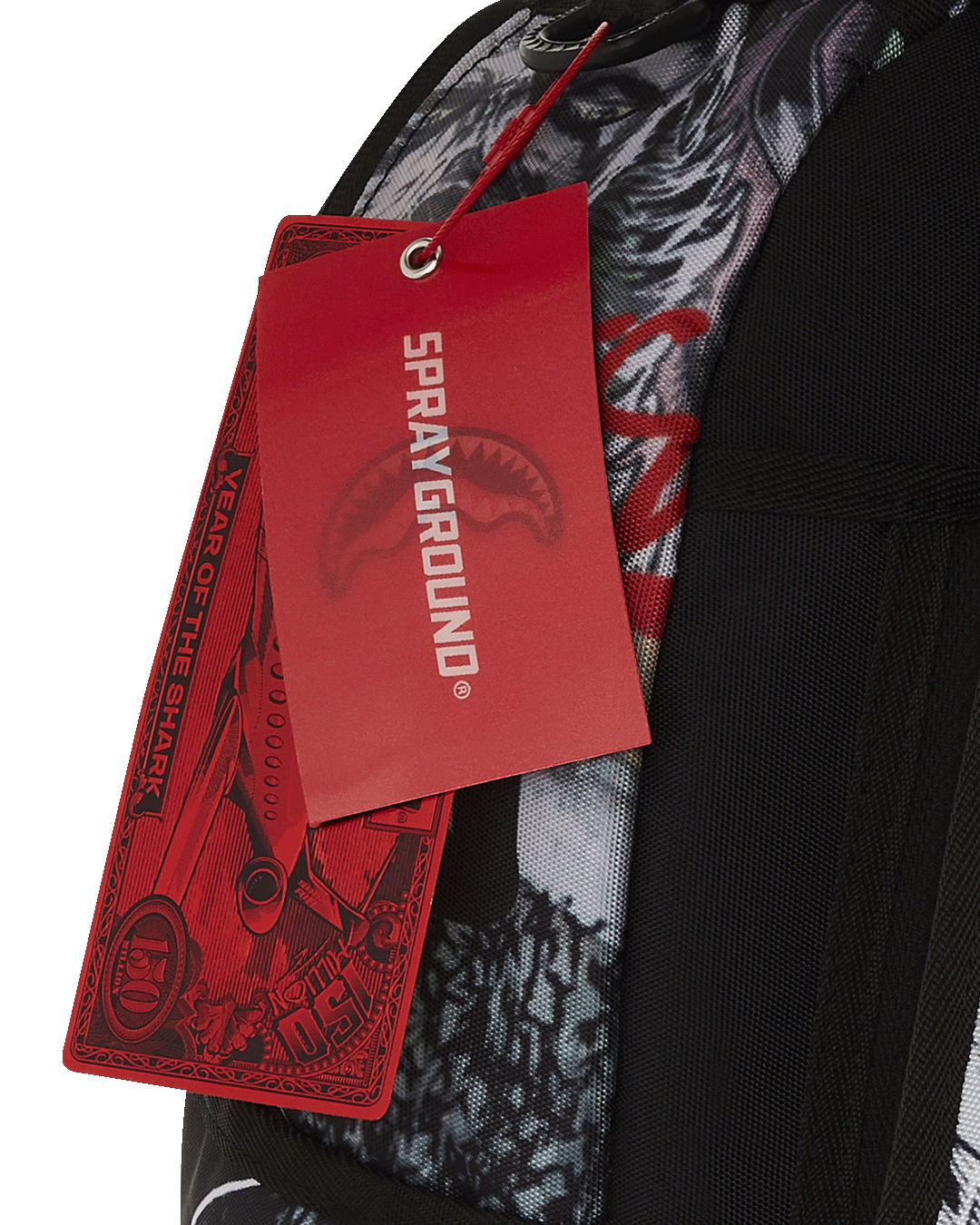 Dimensions: 18″ x 6″ x 11.5″ ? Front zipper pocket ? Side pockets ? Zippered Stash pocket ? Separate velour sunglass compartment ? Ergonomic mesh back padding ? Adjustable Straps for custom sizing ? Gold zippers with metal hardware ? Metal “Sprayground Authentic” badge ? Slide through back sleeve connects to carry-on luggage to free your hands
