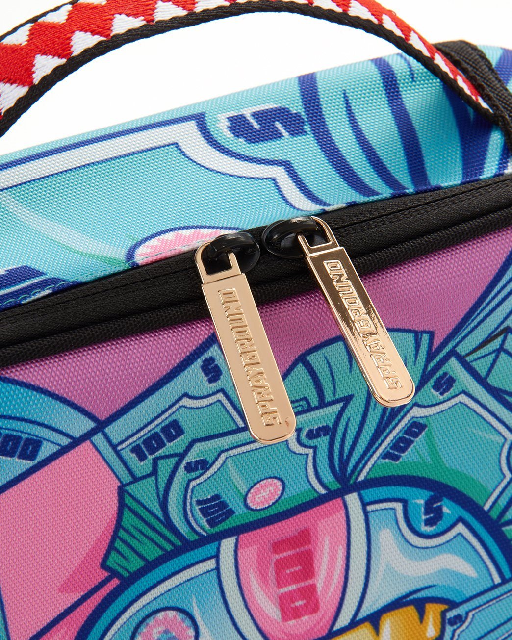 Dimensions: 8.5″ x 3″ x 8.5″ • Double zipper opening • Top handle • Removeable side handle • Gold zippers with metal hardware • Zippered stash pocket