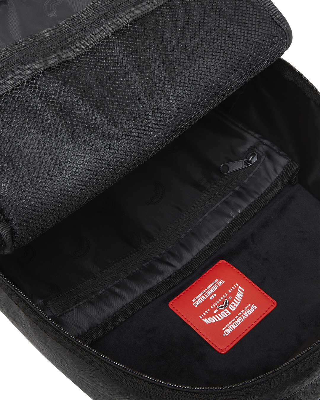 Dimensions: 18″ x 6″ x 11.5″ • Front zipper pocket • Side pockets • Zippered Stash pocket • Separate velour sunglass compartment • Ergonomic mesh back padding • Adjustable Straps for custom sizing • Gold zippers with metal hardware • Metal “Sprayground Authentic” badge • Slide through back sleeve connects to carry-on luggage to free your hands