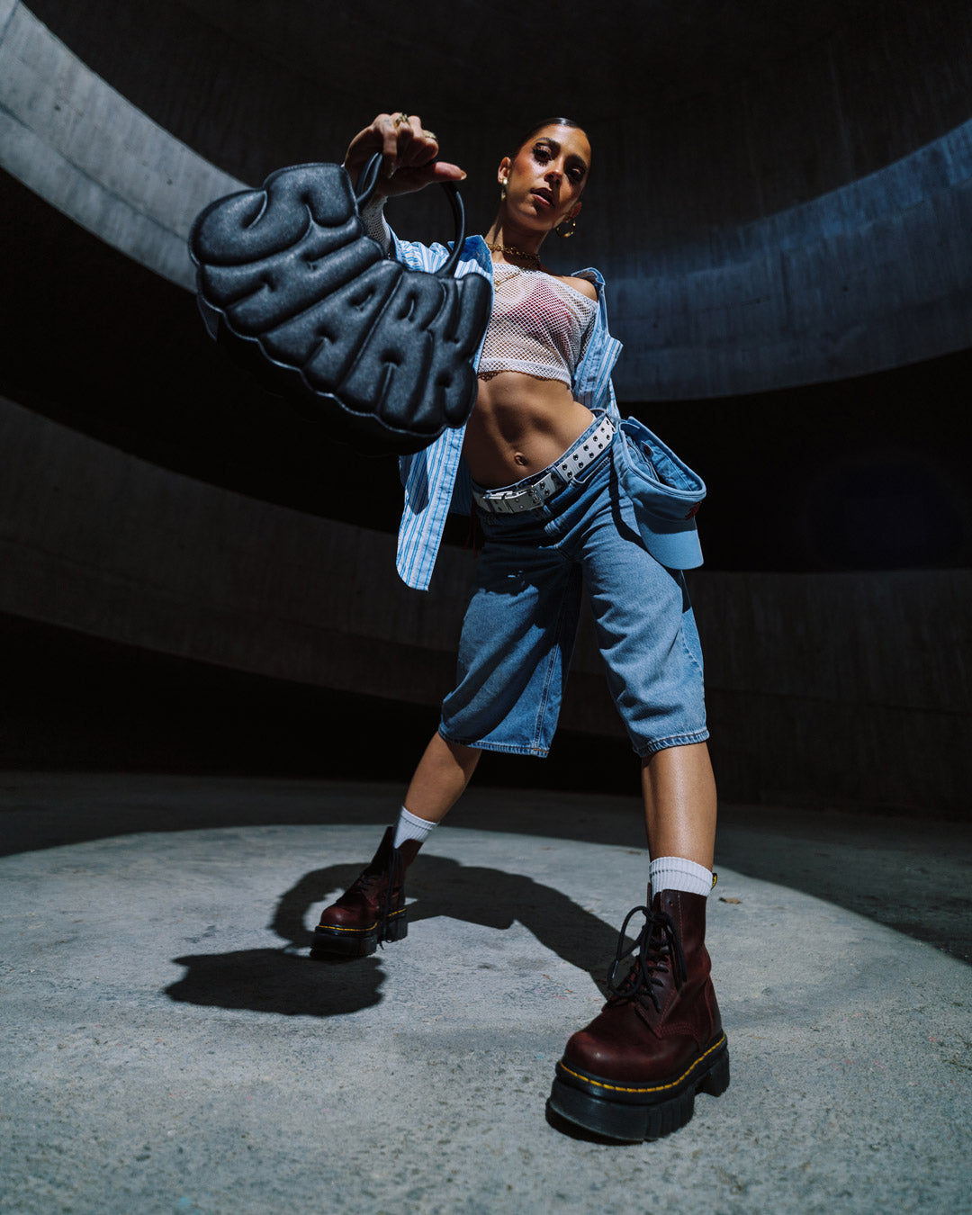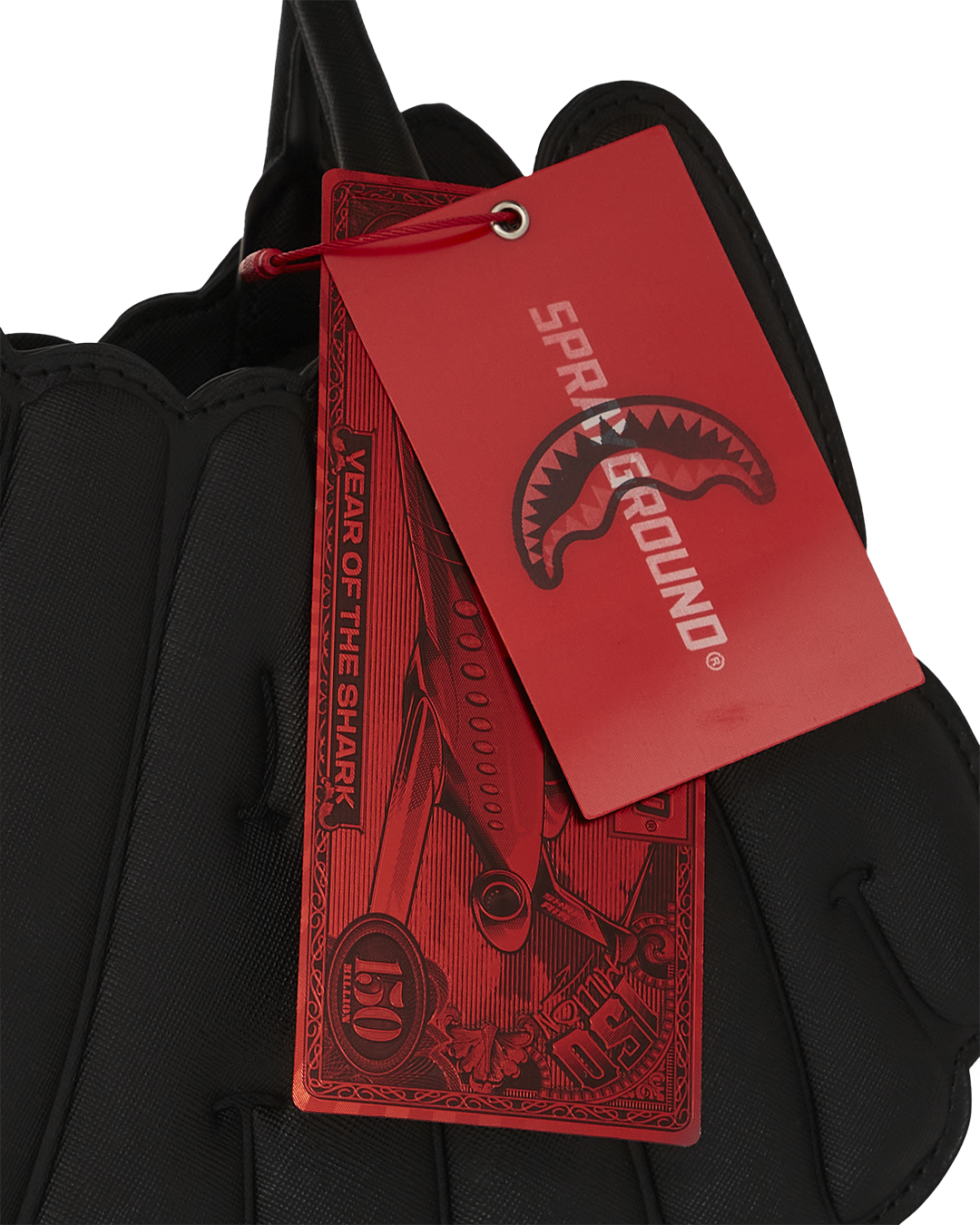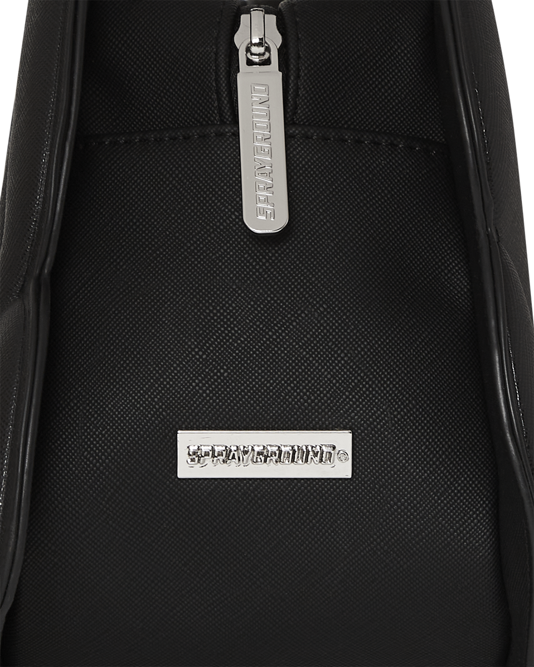 Black saffiano PVC offers a textured, scratch-resistant surface with a matte finish. The vegan leather handle is soft yet sturdy, designed for comfort. Gunmetal chains and studs add a cool, industrial shine, perfectly contrasting the tactile saffiano texture