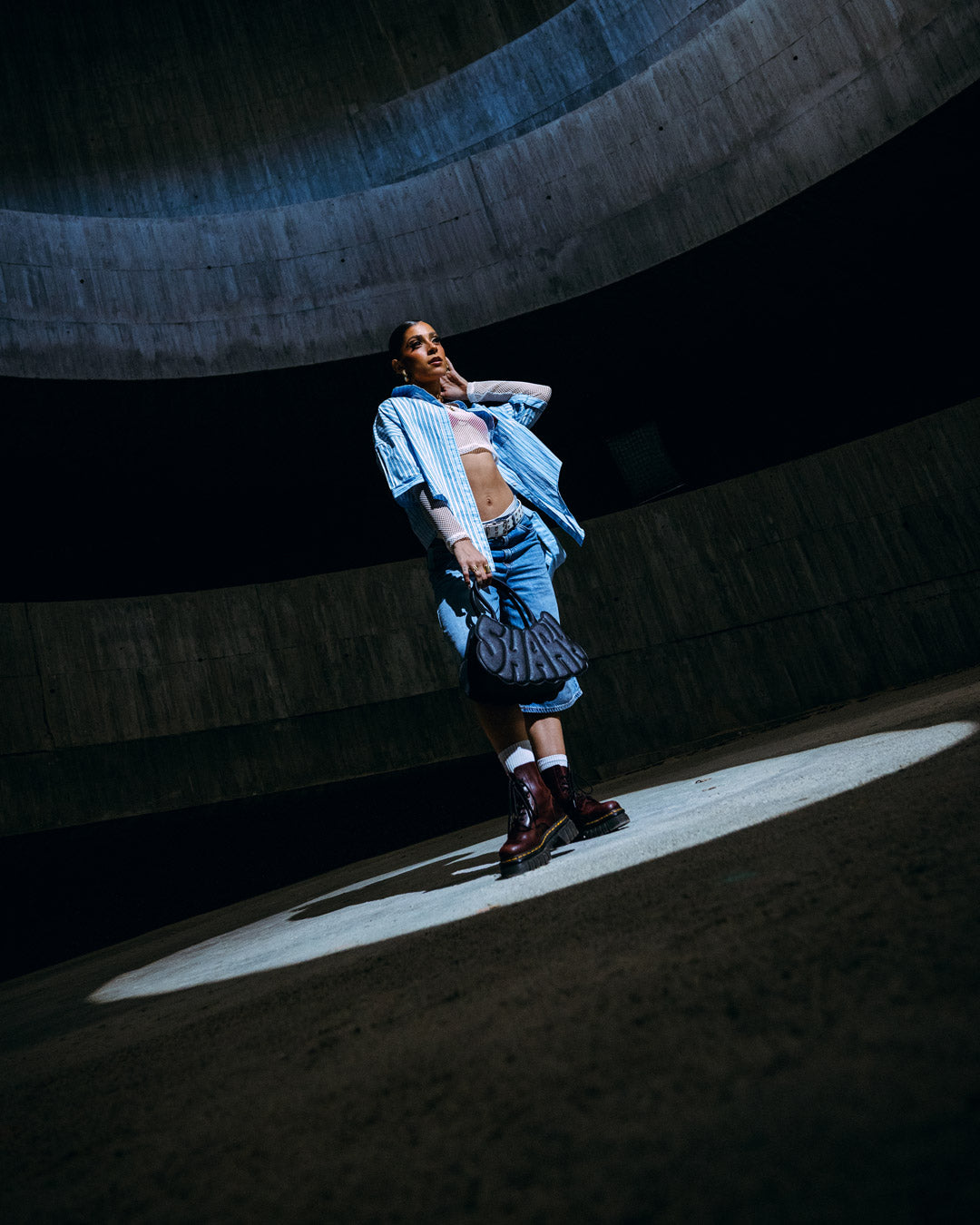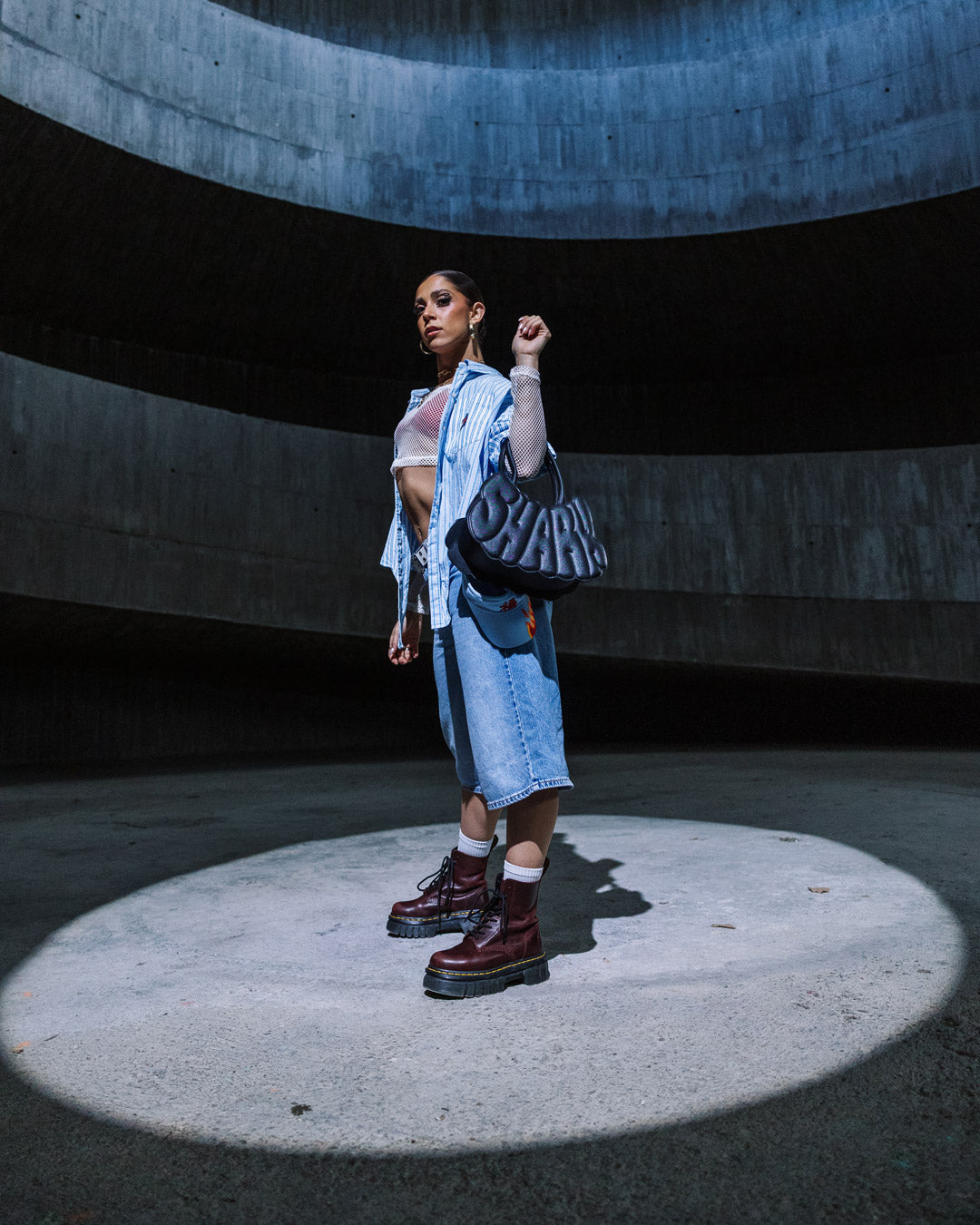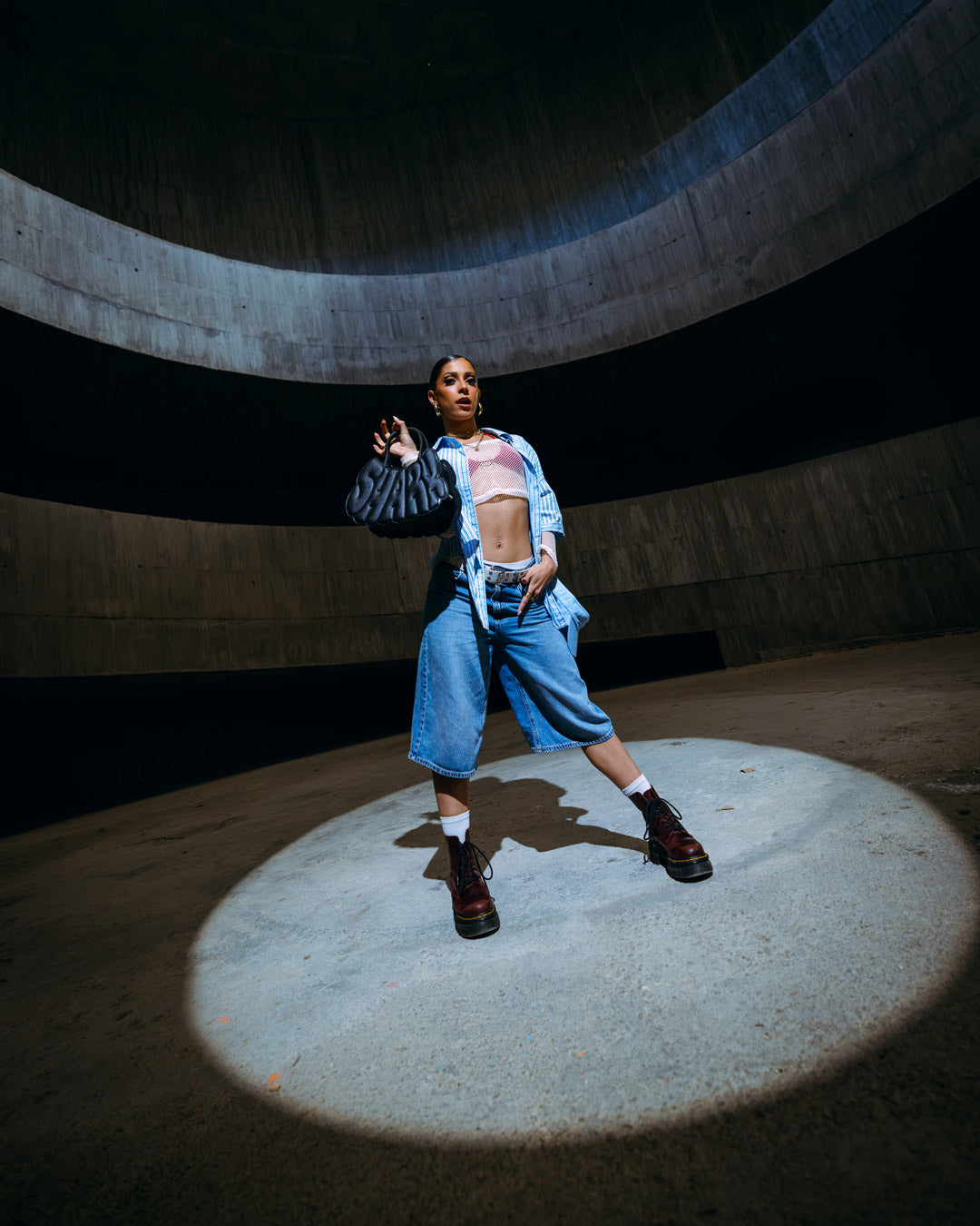 Black saffiano PVC offers a textured, scratch-resistant surface with a matte finish. The vegan leather handle is soft yet sturdy, designed for comfort. Gunmetal chains and studs add a cool, industrial shine, perfectly contrasting the tactile saffiano texture