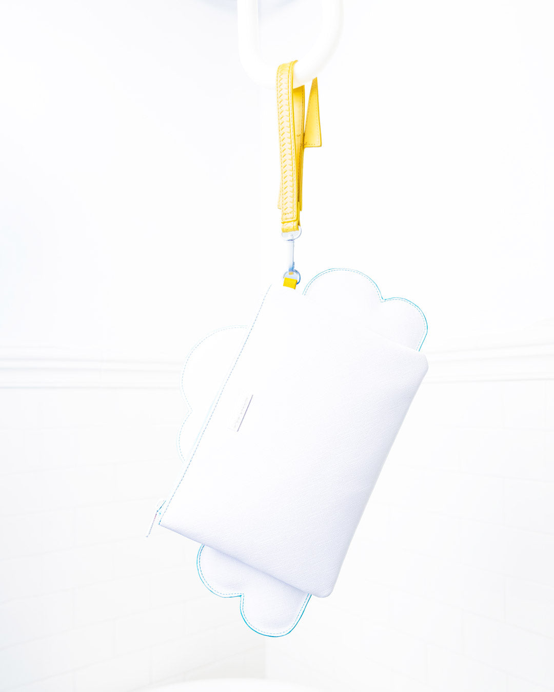 A fun quirky capsule with dye cut clouds and lightning bolts in classic Sprayground silhouettes.