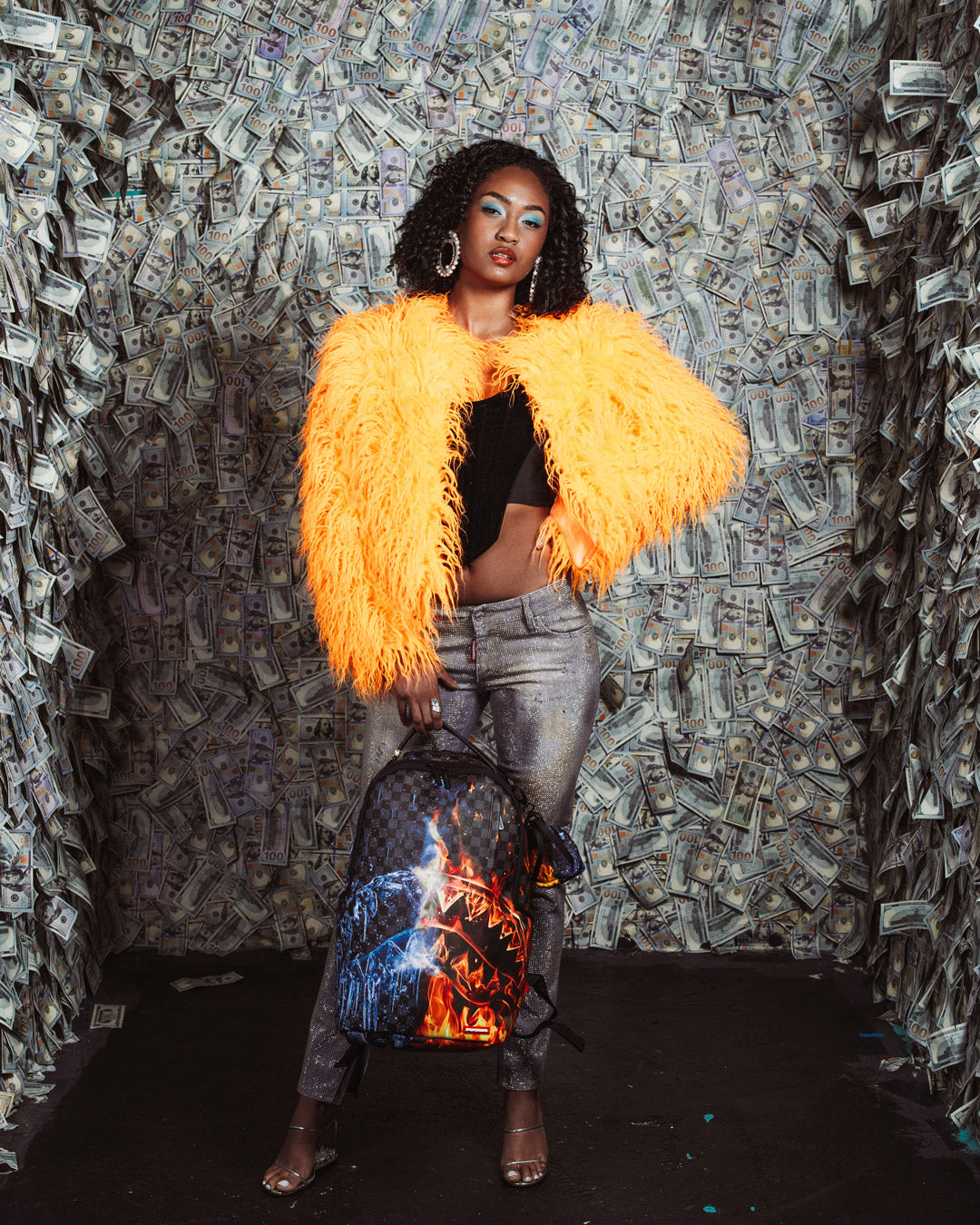 Dimensions: 18″ x 6″ x 11.5″ • Front zipper pocket • Side pockets • Zippered Stash pocket • Separate velour sunglass compartment • Ergonomic mesh back padding • Adjustable Straps for custom sizing • Gold zippers with metal hardware • Metal “Sprayground Authentic” badge • Slide through back sleeve connects to carry-on luggage to free your hands