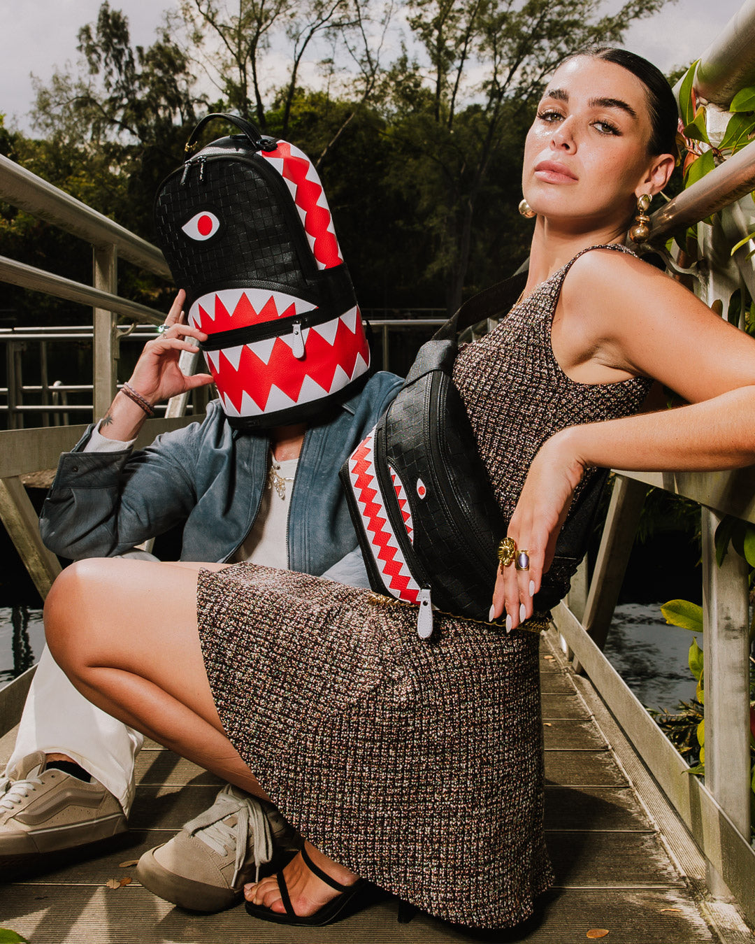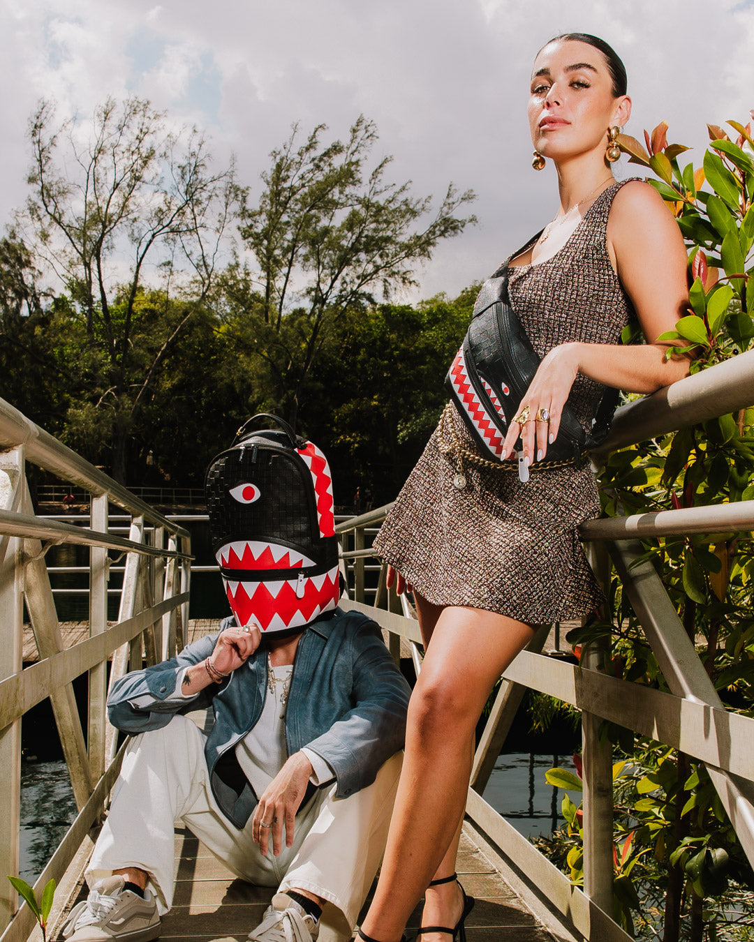 Dimensions: 18″ x 6″ x 11.5″ • Front zipper pocket • Side pockets • Zippered Stash pocket • Separate velour sunglass compartment • Ergonomic mesh back padding • Adjustable Straps for custom sizing • Gold zippers with metal hardware • Metal “Sprayground Authentic” badge • Slide through back sleeve connects to carry-on luggage to free your hands