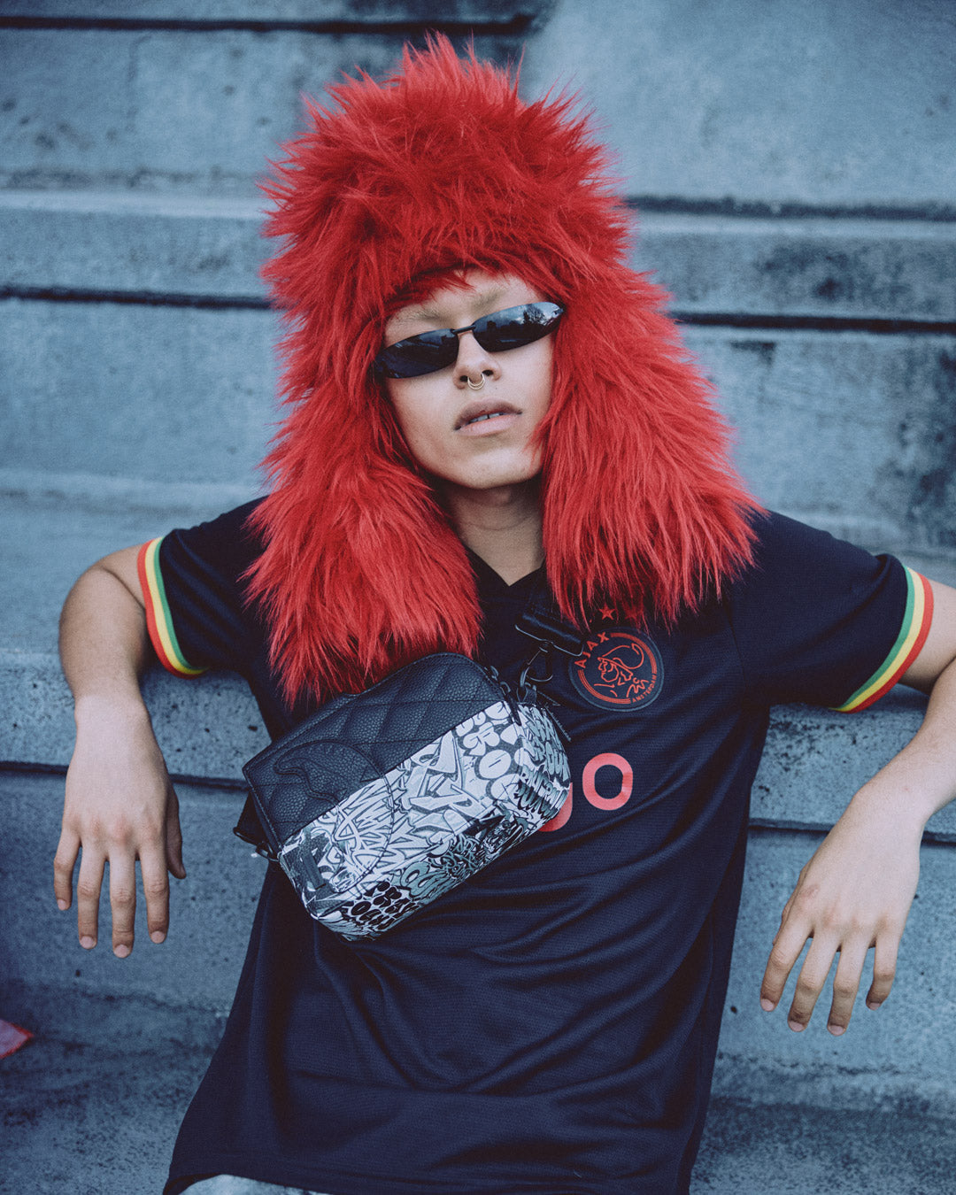 1/2 Quilted  & 1/2 Printed PVC with Cut & Sewn shark mouth details and matte black hardware