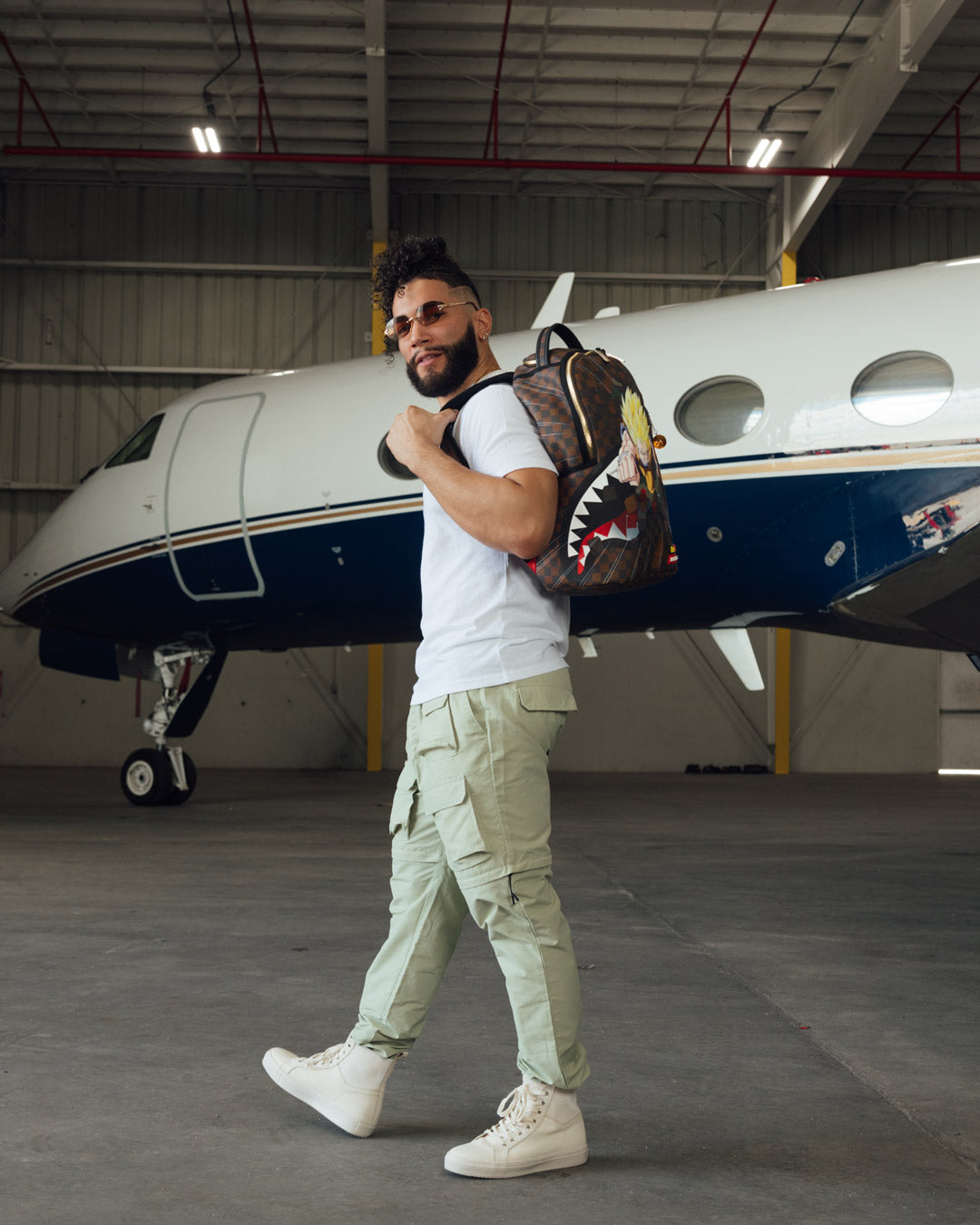 Dimensions: 18″ x 6″ x 11.5″ • Front zipper pocket • Side pockets • Zippered Stash pocket • Separate velour sunglass compartment • Ergonomic mesh back padding • Adjustable Straps for custom sizing • Gold zippers with metal hardware • Metal “Sprayground Authentic” badge • Slide through back sleeve connects to carry on luggage to free your hands