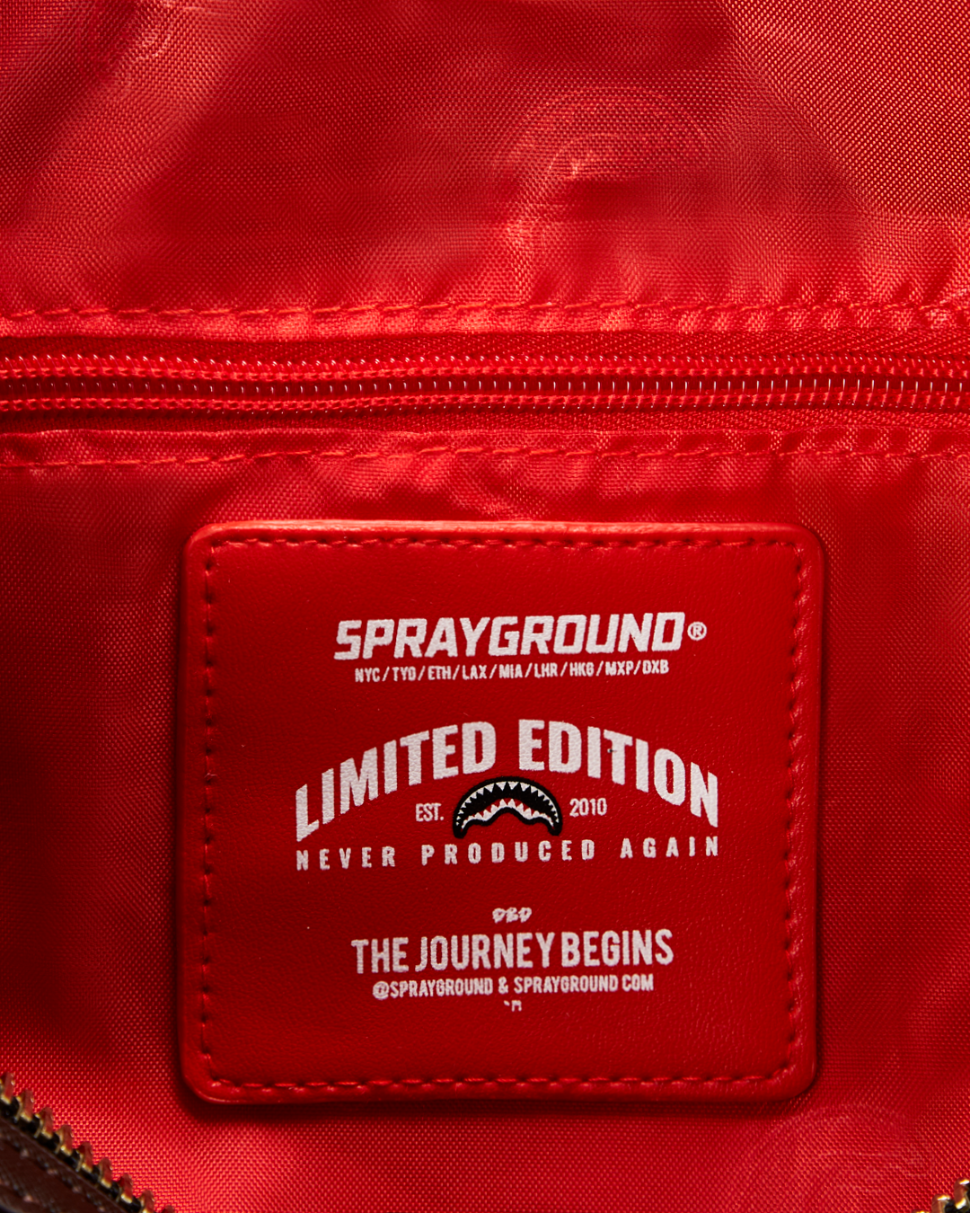 Dimensions: 8″ x 7.5″ x 13″ • Zippered top opening • Zippered pocket on back panel • Zippered side pocket • Removable adjustable strap for custom sizing with reinforced crossbody construction • Logo embossed shoulder pad for comfort • Gold zippers with metal hardware • Zippered stash pocket