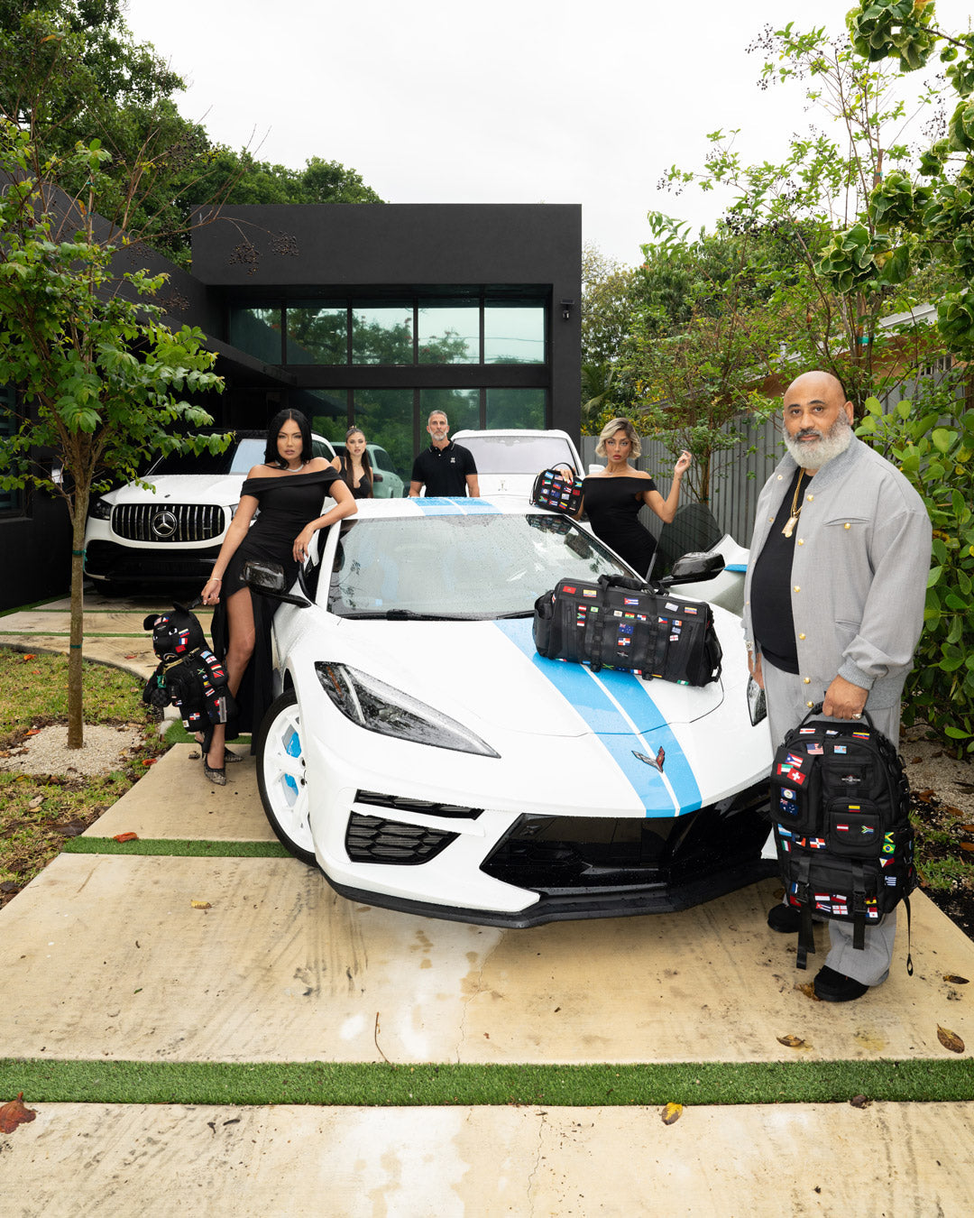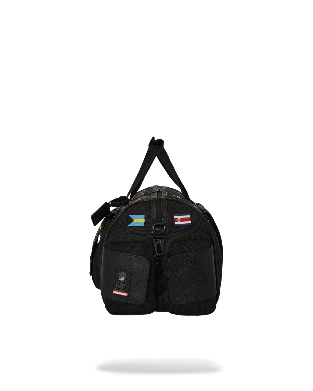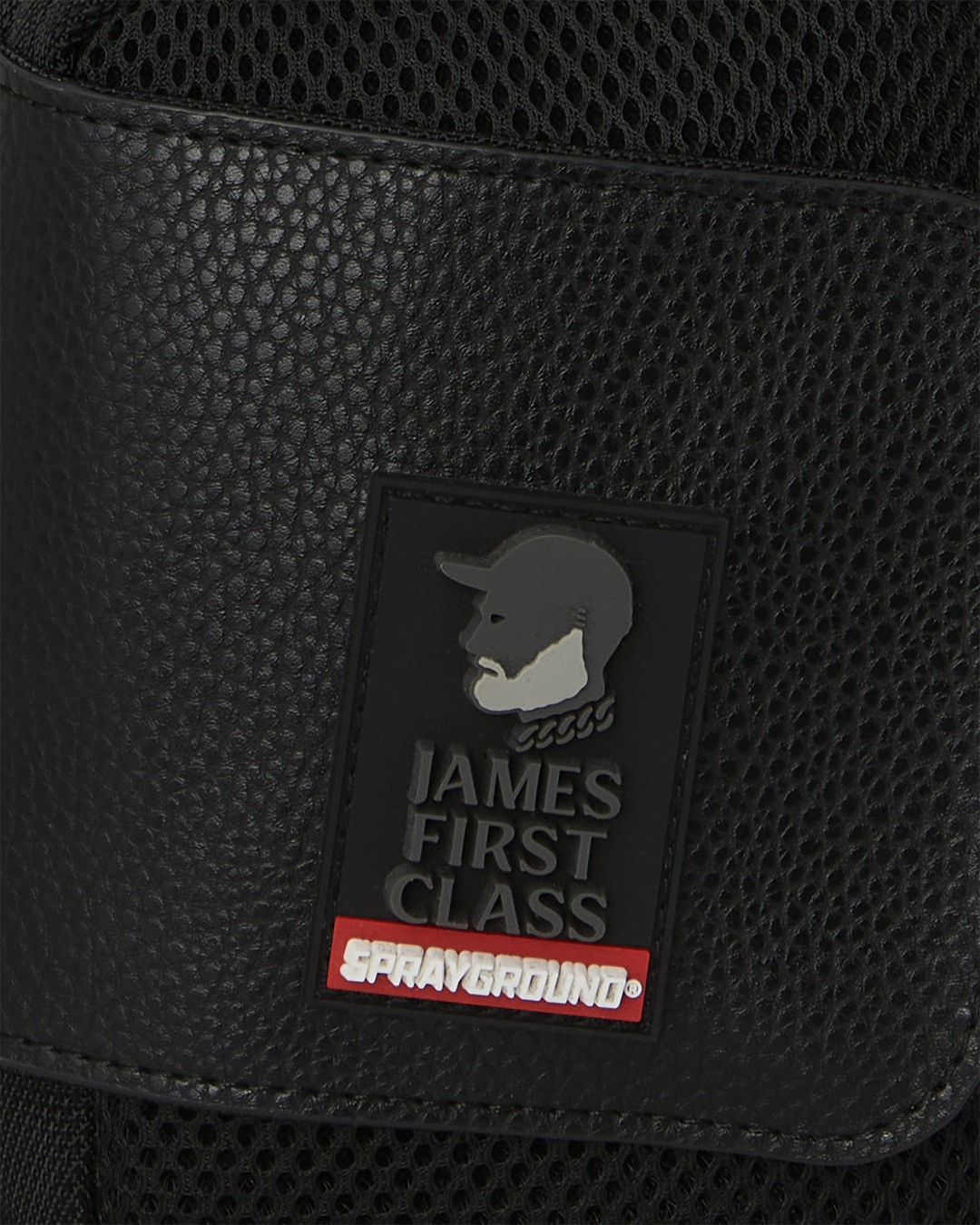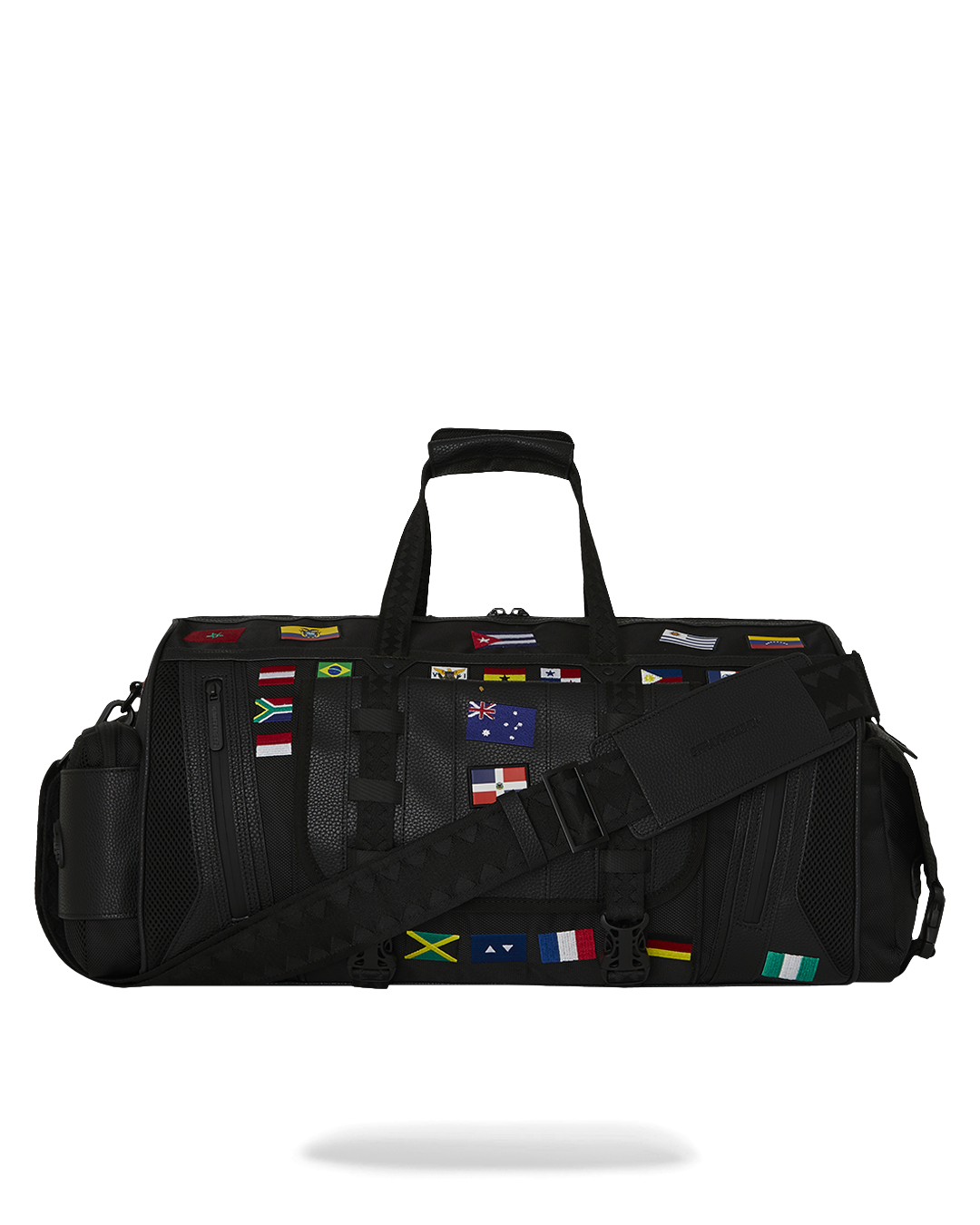 100% ballistic polyester embroidered with flag patches and?embossed details such as the sharkmouth and zipper pullers. Sewn faux leather details around the front zipper pocket.