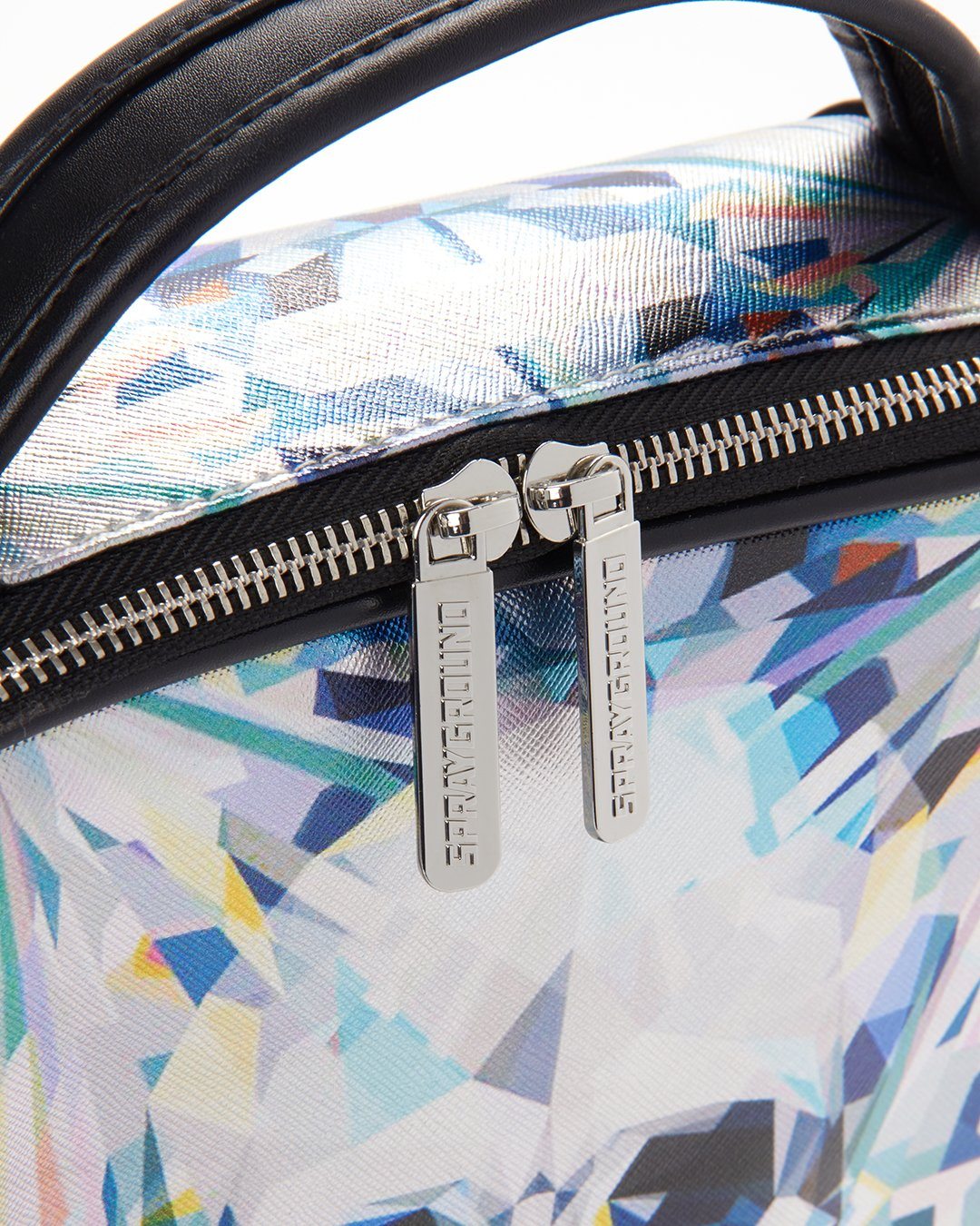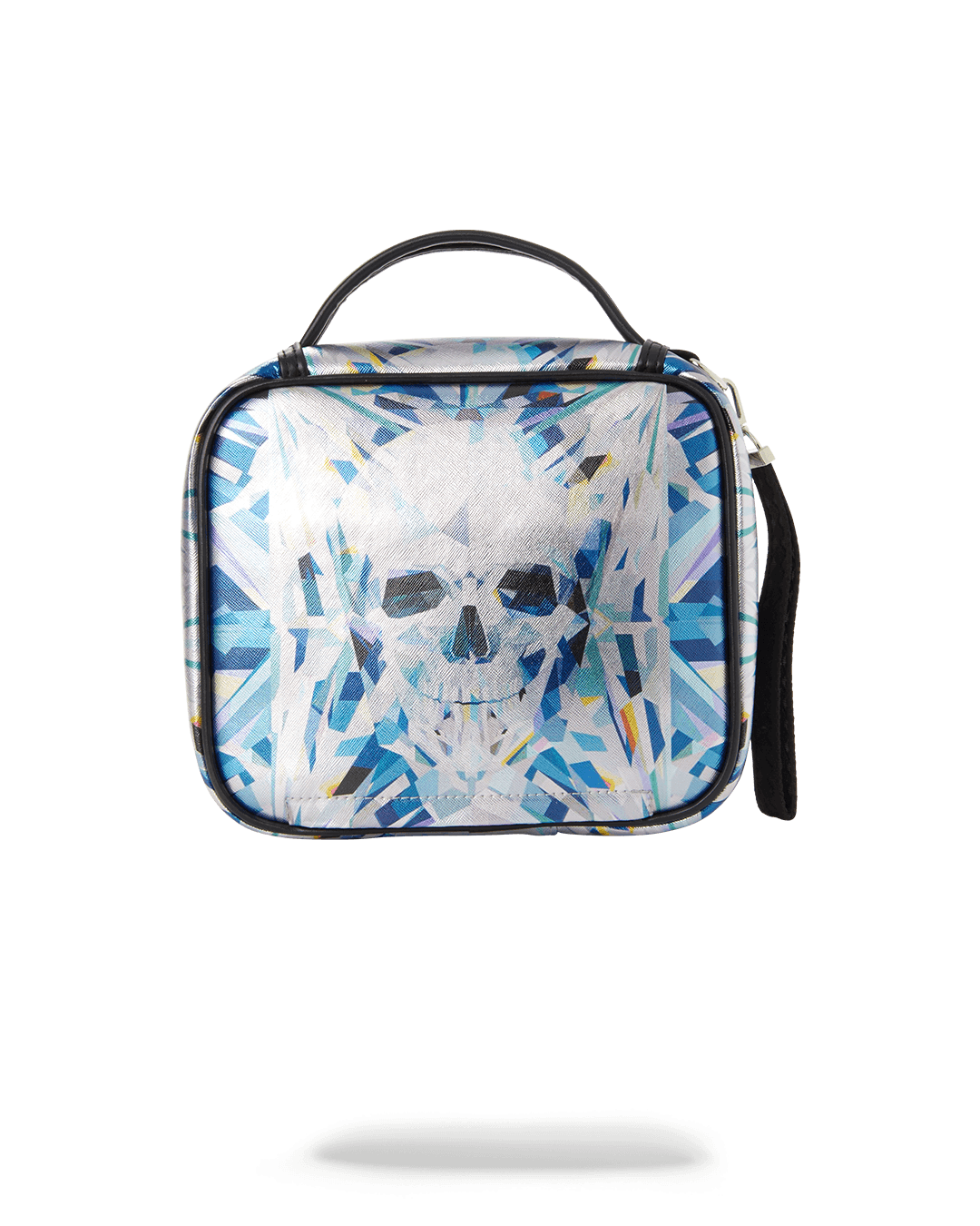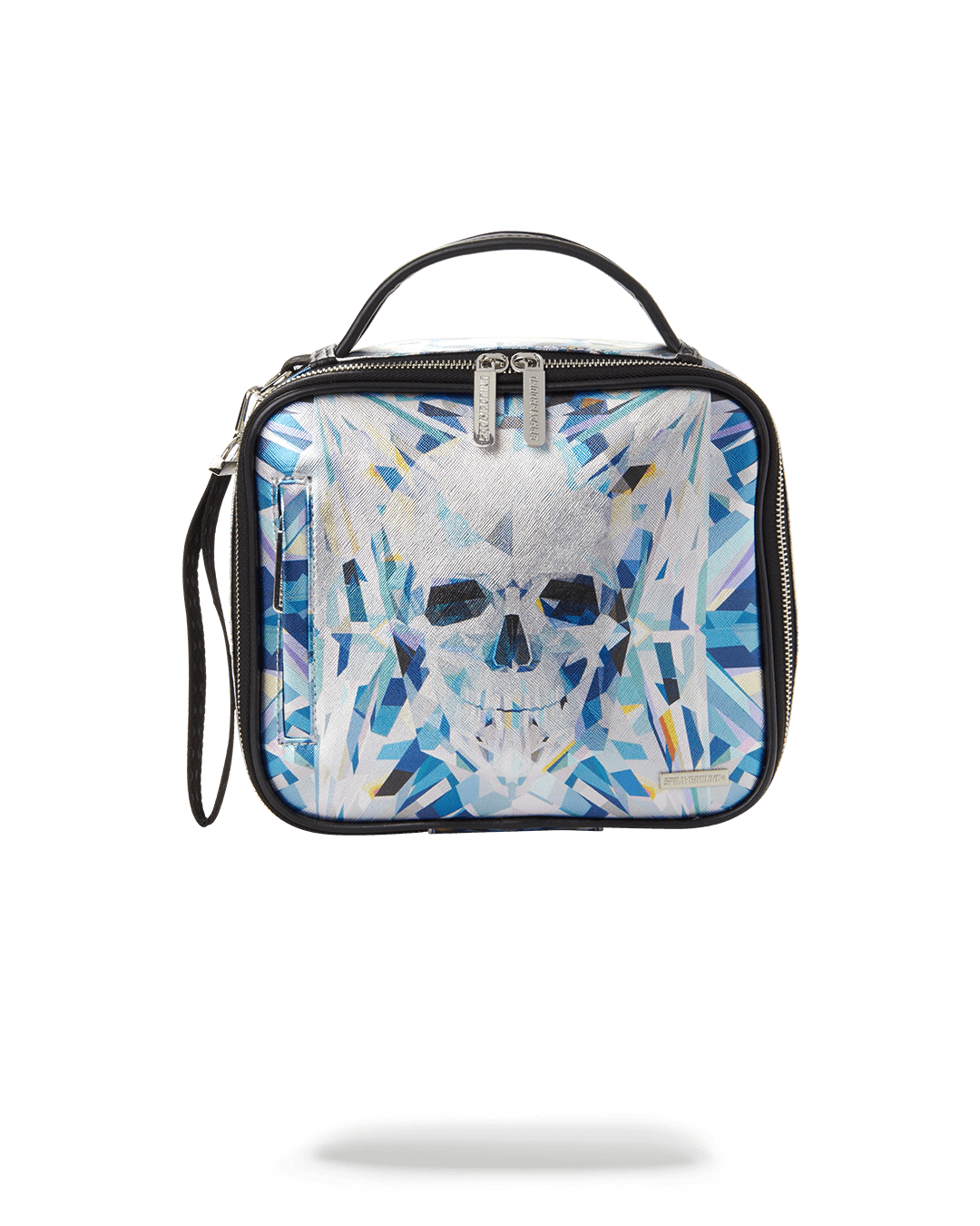 Dimensions: 8.5″ x 3″ x 8.5″ • Double zipper opening • Top handle • Removeable side handle • Silver zippers with metal hardware • Zippered stash pocket