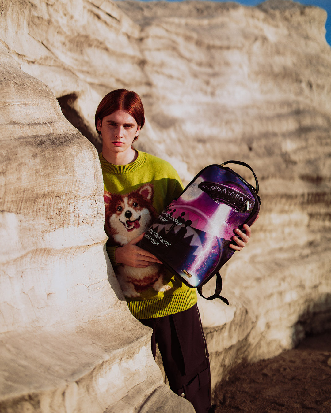 Dimensions: 18″ x 6″ x 11.5″ • Front zipper pocket • Side pockets • Zippered Stash pocket • Separate velour sunglass compartment • Ergonomic mesh back padding • Adjustable Straps for custom sizing • Gold zippers with metal hardware • Metal “Sprayground Authentic” badge • Slide through back sleeve connects to carry-on luggage to free your hands