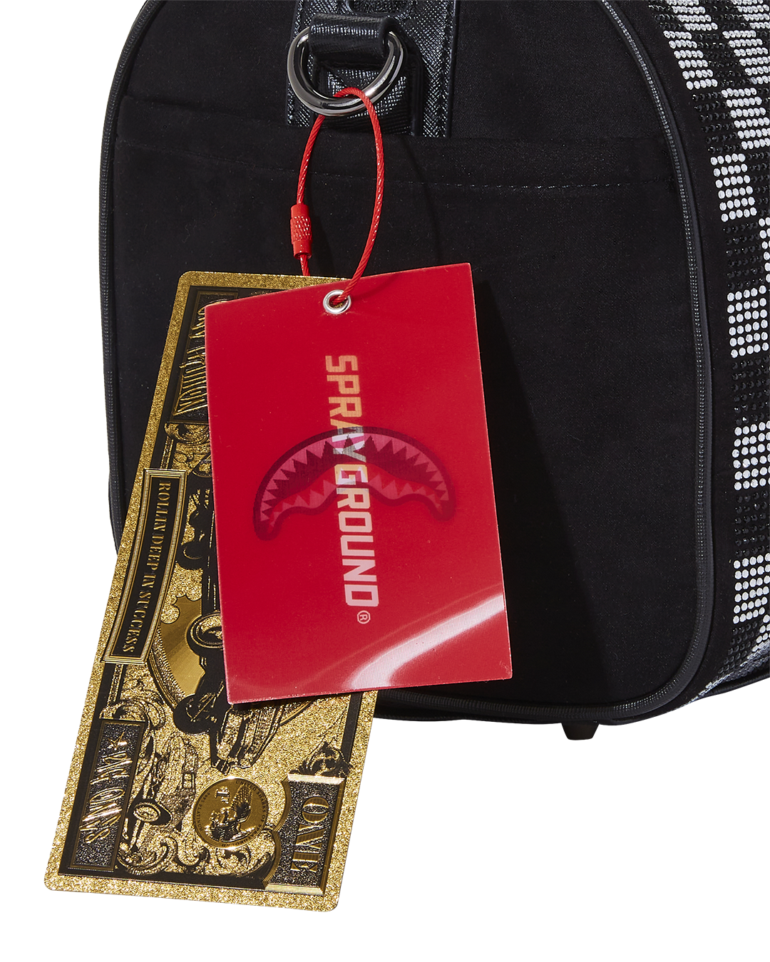Dimensions: 8″ x 7.5″ x 13″? Metal zipper pocket??Back Zippers ?Zippered sneaker pocket ? gold zippers ? Adjustable Straps for custom sizing ?Metal Zippers with Metal Hardware ? bag of Sprayground money