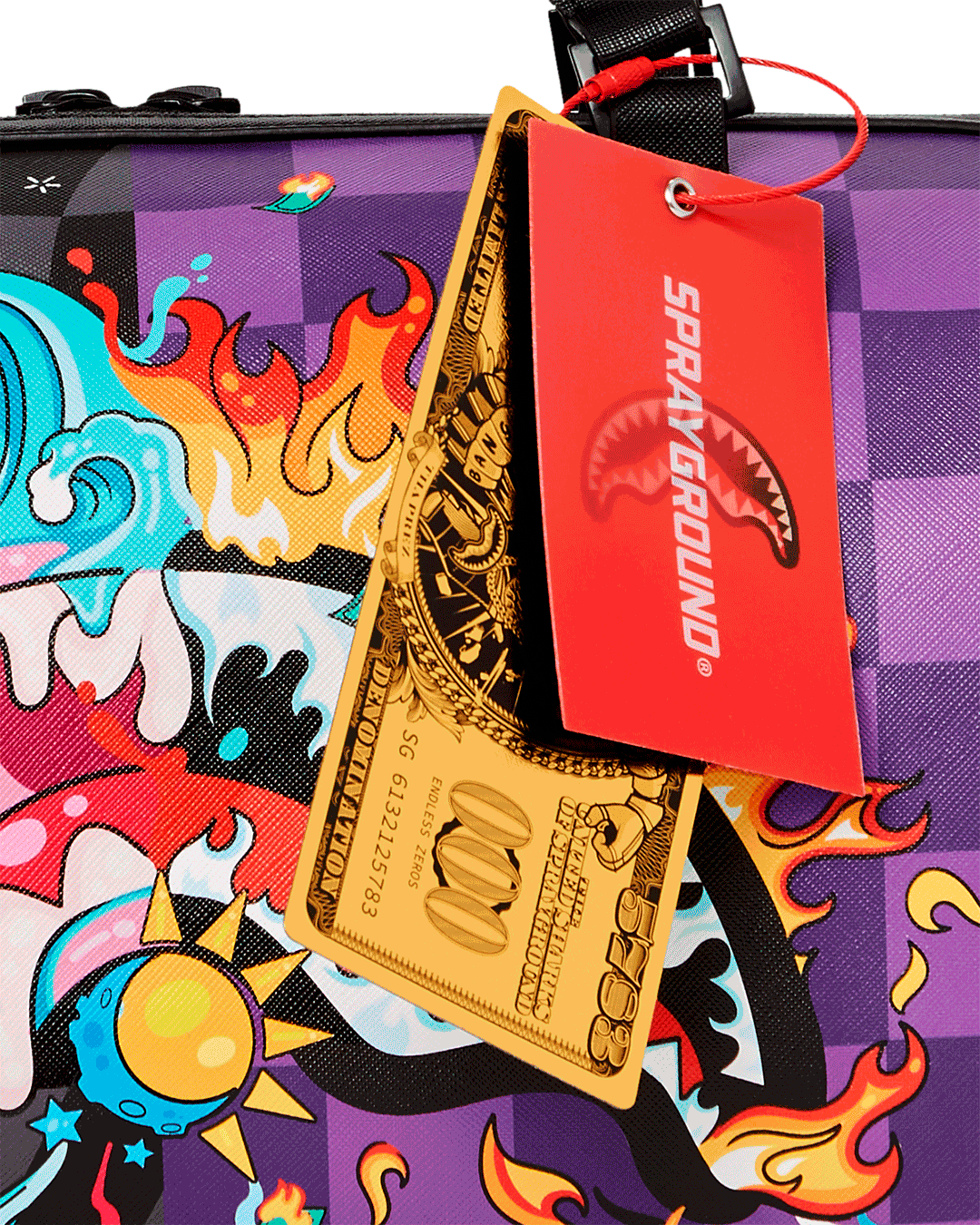 Dimensions: 8″ x 7.5″ x 13″? Metal zipper pocket??Back Zippers ?Zippered sneaker pocket ? gold zippers ? Adjustable Straps for custom sizing ?Metal Zippers with Metal Hardware ? bag of Sprayground money