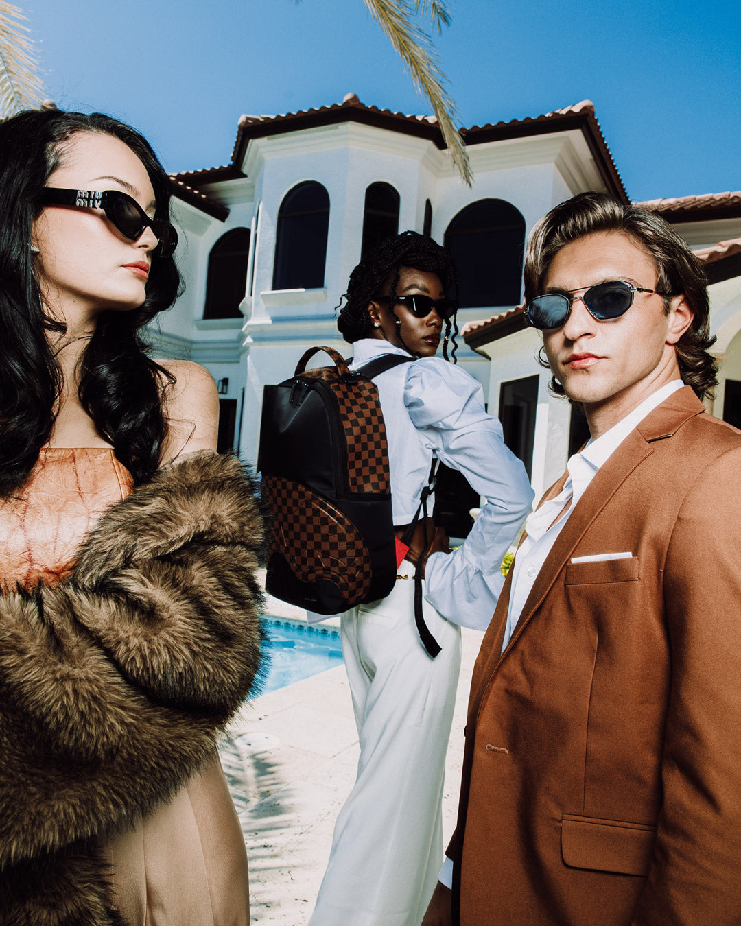 Dimensions: 18″ x 6″ x 11.5″ • Front zipper pocket • Side pockets • Zippered Stash pocket • Separate velour sunglass compartment • Ergonomic mesh back padding • Adjustable Straps for custom sizing • Gold zippers with metal hardware • Metal “Sprayground Authentic” badge • Slide through back sleeve connects to carry-on luggage to free your hands