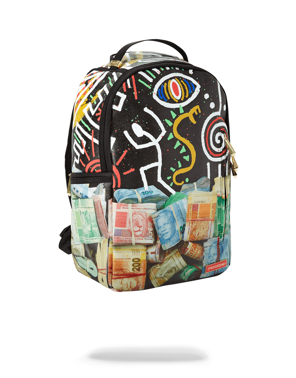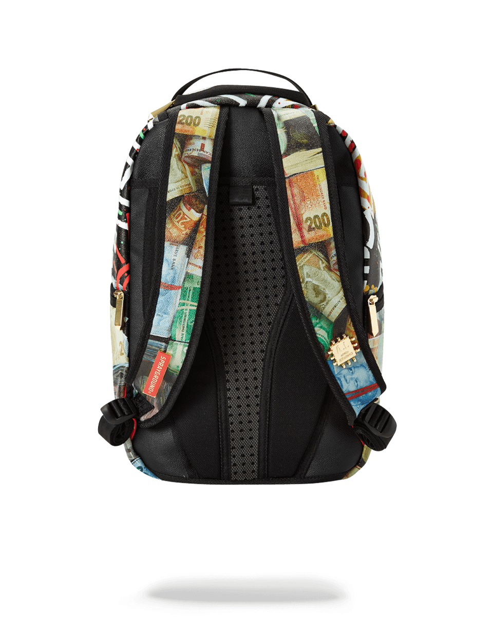 Dimensions: 18″ x 6″ x 11.5″ ? Front zipper pocket ? Side pockets ? Zippered Stash pocket ? Ergonomic mesh back padding ? Adjustable Straps for custom sizing ? Nylon Zippers with Metal Hardware ? Metal “Sprayground Authentic” badge ? Slide through back sleeve connects to Carry on luggage to free your hands