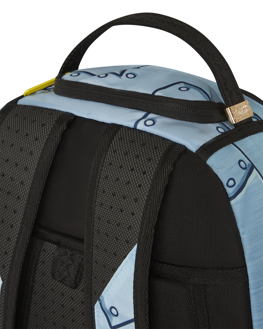 Dimensions: 18″ x 6″ x 11.5″ • Front zipper pocket • Side pockets • Zippered Stash pocket • Separate velour sunglass compartment • Ergonomic mesh back padding • Adjustable Straps for custom sizing • Gold zippers with metal hardware • Metal “Sprayground Authentic” badge • Slide through back sleeve connects to carry-on luggage to free your hands