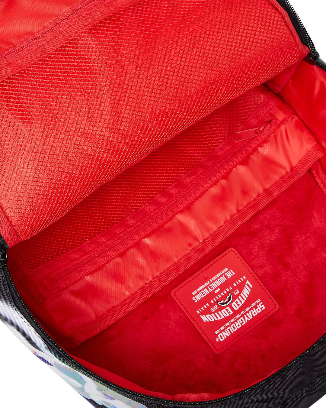 Dimensions: 18″ x 6″ x 11.5″ • Front zipper pocket • Side pockets • Zippered Stash pocket • Separate velour sunglass compartment • Ergonomic mesh back padding • Adjustable Straps for custom sizing • Gold zippers with metal hardware • Metal “Sprayground Authentic” badge • Slide through back sleeve connects to carry-on luggage to free your hands