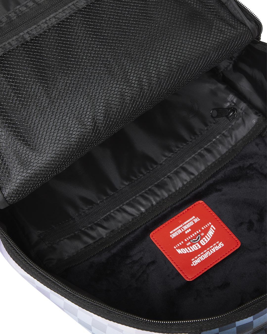 Dimensions: 18″ x 6″ x 11.5″ • Front zipper pocket • Side pockets • Zippered Stash pocket • Separate velour sunglass compartment • Ergonomic mesh back padding • Adjustable Straps for custom sizing • Gold zippers with metal hardware • Metal “Sprayground Authentic” badge • Slide through back sleeve connects to carry-on luggage to free your hands
