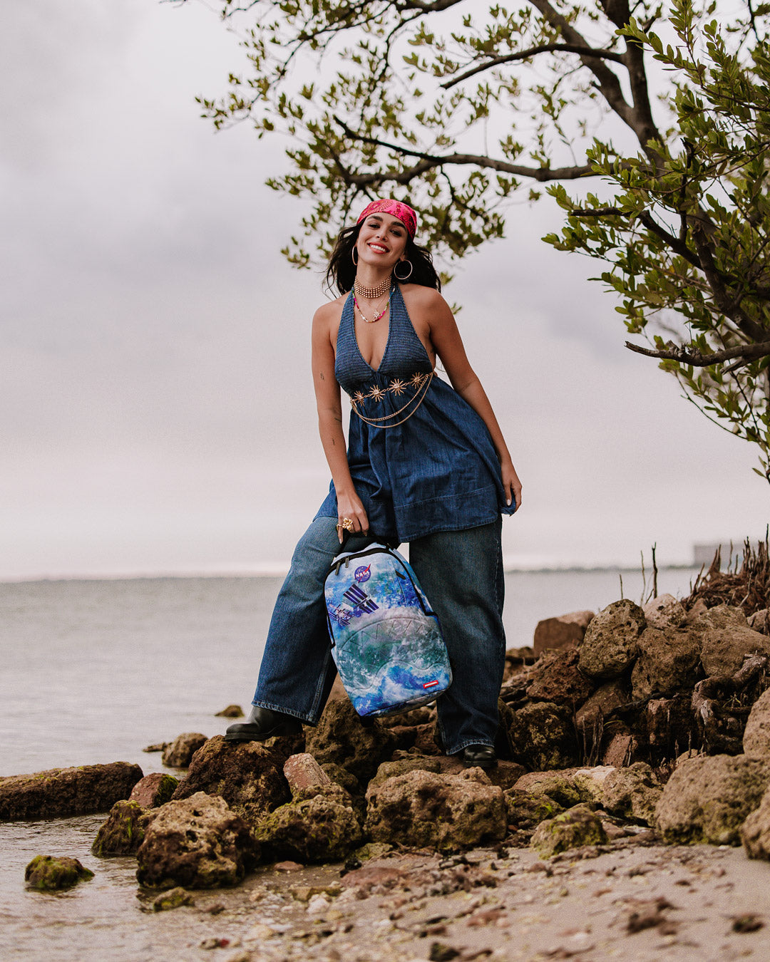 Dimensions: 18″ x 6″ x 11.5″ • Front zipper pocket • Side pockets • Zippered Stash pocket • Separate velour sunglass compartment • Ergonomic mesh back padding • Adjustable Straps for custom sizing • Gold zippers with metal hardware • Metal “Sprayground Authentic” badge • Slide through back sleeve connects to carry-on luggage to free your hands
