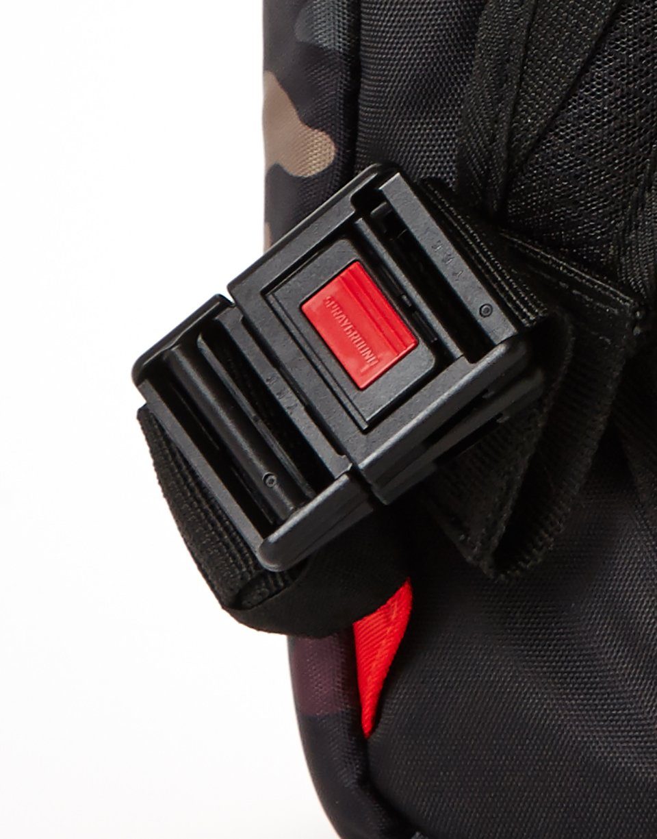 Dimensions: 18″ x 6″ x 11.5″ •Front zipper pocket Side pockets Zippered Stash pocket • Ergonomic mesh back padding Adjustable Straps for custom sizing • Nylon Zippers with Metal Hardware • Metal “Sprayground Authentic” badge •Slide through back sleeve connects to Carry on luggage to free your hands