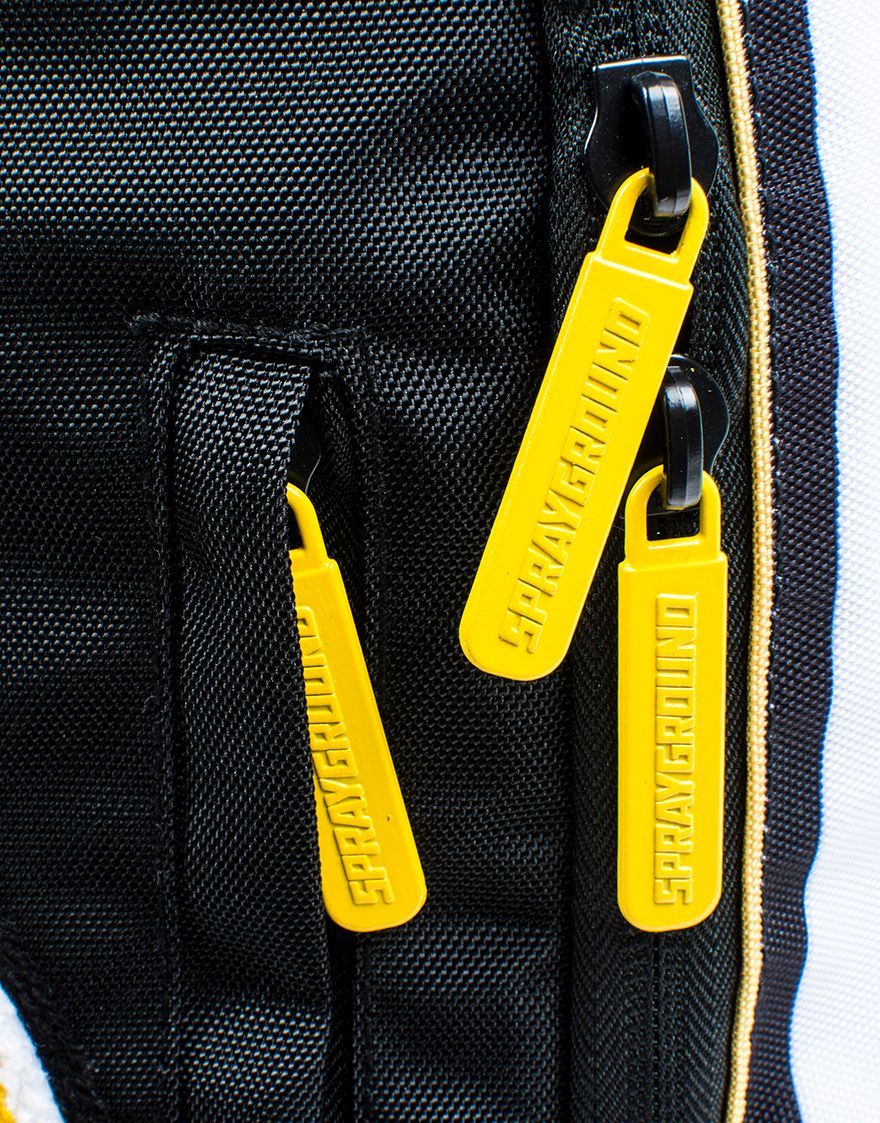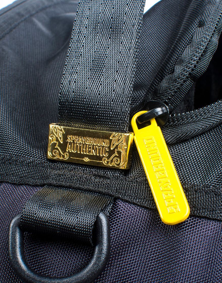 Dimensions: 18″ x 6″ x 11.5″ ∙ Front zipper pocket ∙ Side pockets ∙ Zippered Stash pocket ∙ Ergonomic mesh back padding ∙ Adjustable Straps for custom sizing ∙ Nylon Zippers with Metal Hardware ∙ Metal “Sprayground Authentic” badge ∙ Slide through back sleeve connects to Carry on luggage to free your hands