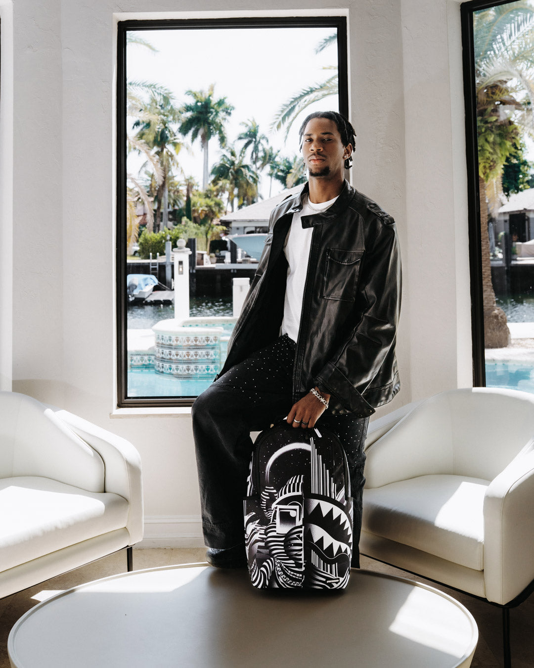 Dimensions: 18″ x 6″ x 11.5″ • Front zipper pocket • Side pockets • Zippered Stash pocket • Separate velour sunglass compartment • Ergonomic mesh back padding • Adjustable Straps for custom sizing • Gold zippers with metal hardware • Metal “Sprayground Authentic” badge • Slide through back sleeve connects to carry-on luggage to free your hands