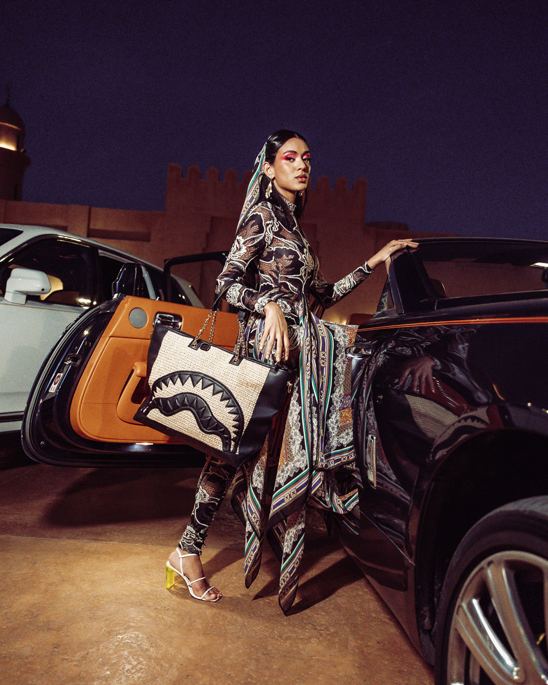 Textured Beach Tote with Cut & Sewn Shark mouth Details