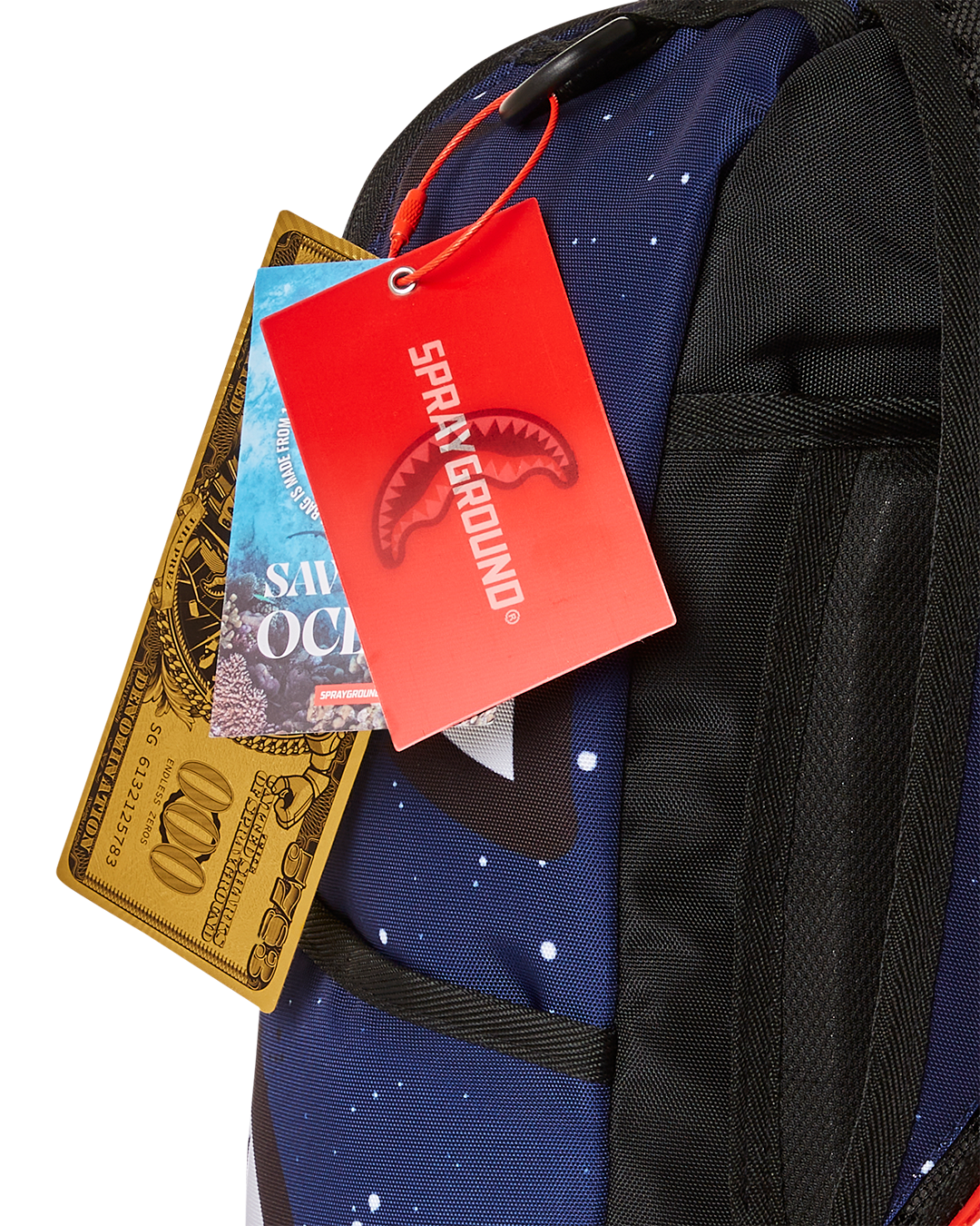 Dimensions: 18″ x 6″ x 11.5″ • Front zipper pocket • Side pockets • Zippered Stash pocket • Separate velour sunglass compartment • Ergonomic mesh back padding • Adjustable Straps for custom sizing • Gold zippers with metal hardware • Metal “Sprayground Authentic” badge • Slide through back sleeve connects to carry-on luggage to free your hands