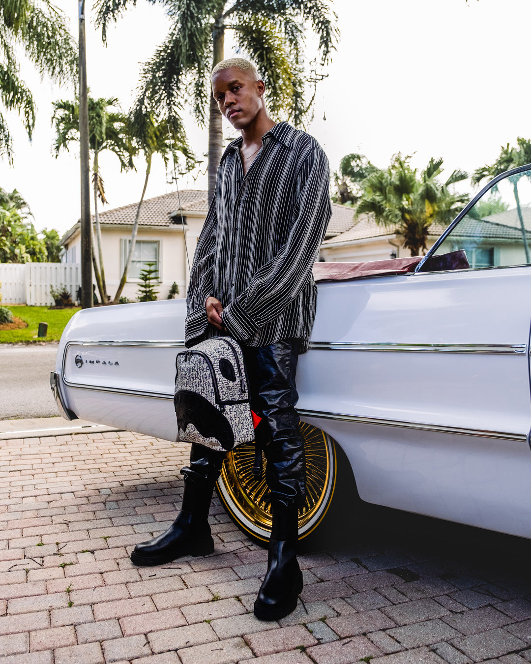 Dimensions: 10″ x 5″ x 11.5″ • Two large main zippered compartments • Side pockets • Zippered Stash pocket • Adjustable straps for custom sizing • Gold zippers with metal hardware