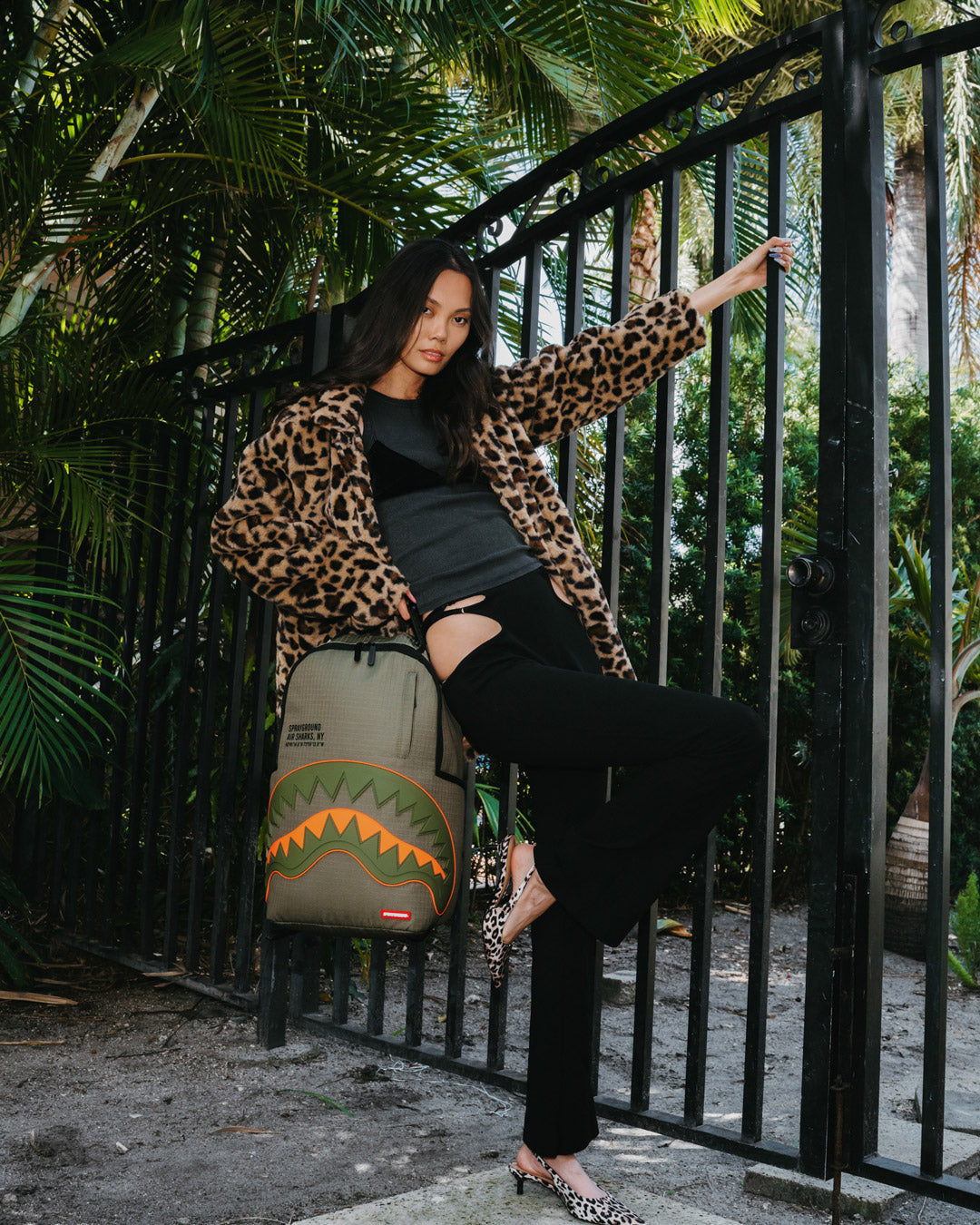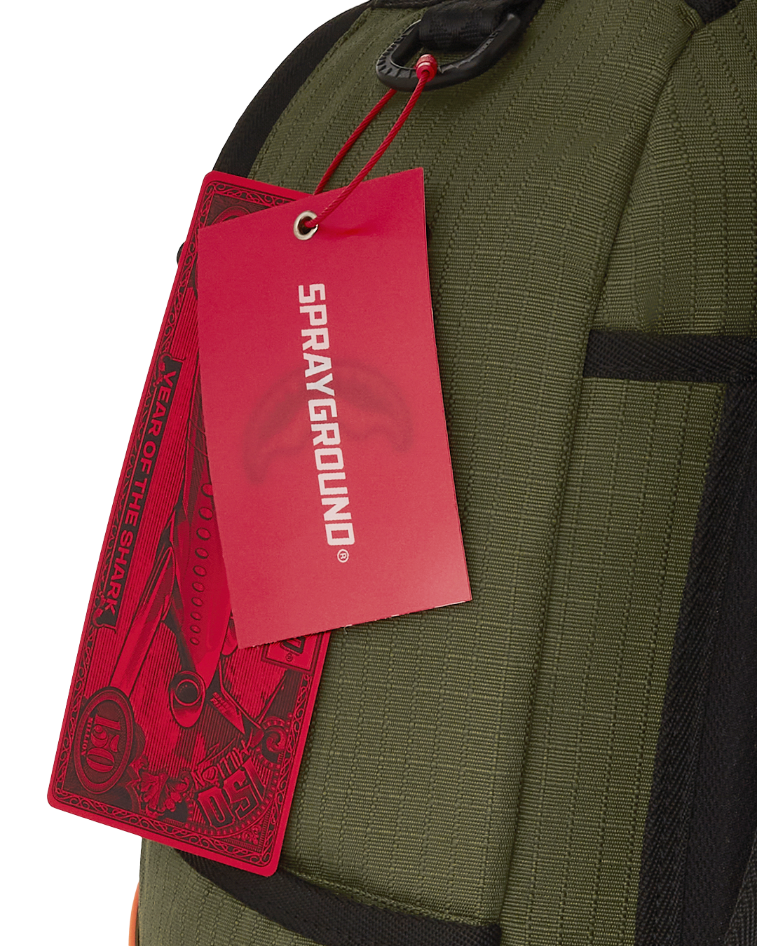 Dimensions: 18″ x 6″ x 11.5″ • Front zipper pocket • Side pockets • Zippered Stash pocket • Separate velour sunglass compartment • Ergonomic mesh back padding • Adjustable Straps for custom sizing • Gold zippers with metal hardware • Metal “Sprayground Authentic” badge • Slide through back sleeve connects to carry-on luggage to free your hands
