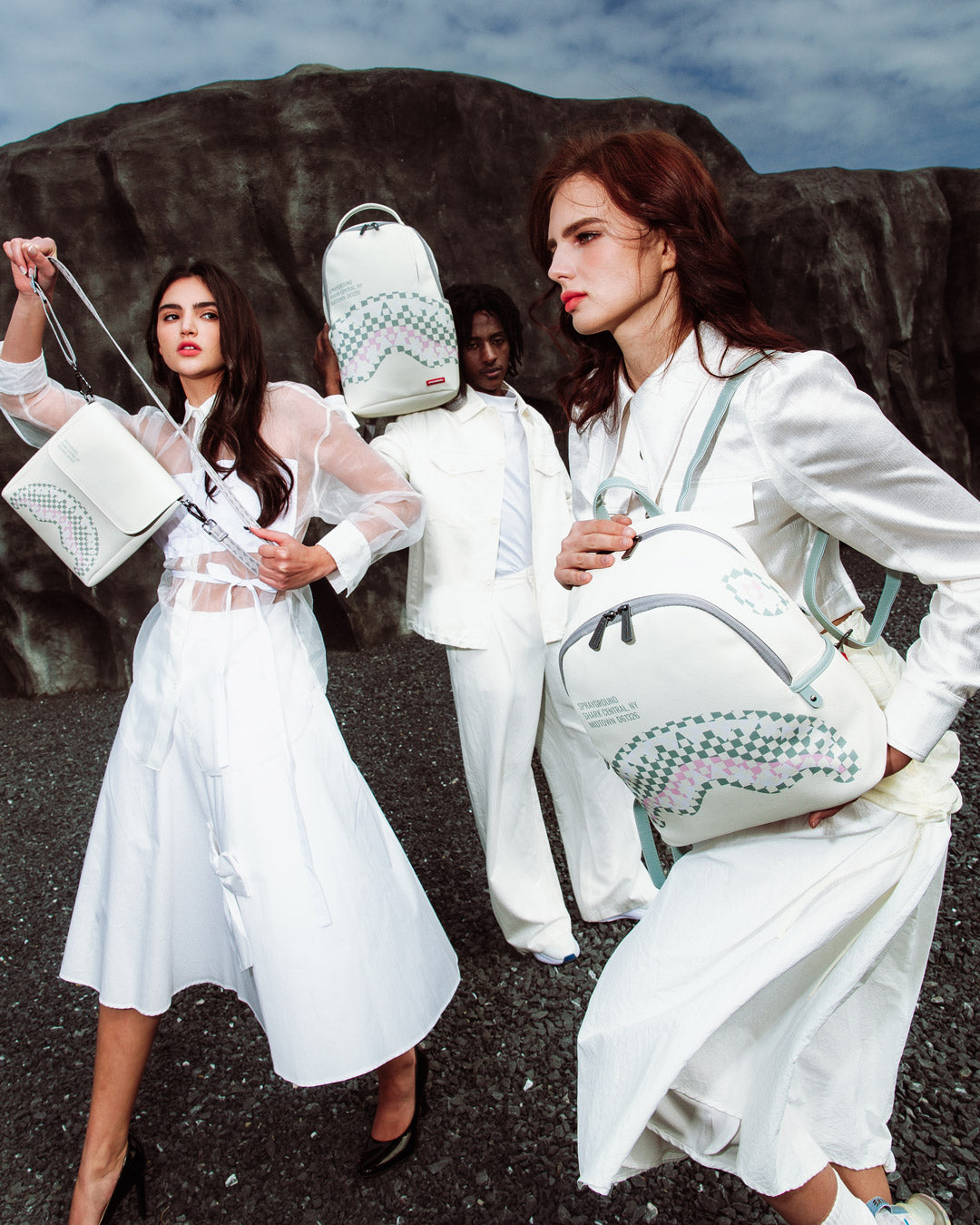 Dimensions: 10″ x 5″ x 11.5″ • Two large main zippered compartments • Side pockets • Zippered Stash pocket • Adjustable straps for custom sizing • Gold zippers with metal hardware