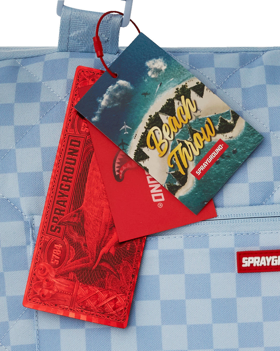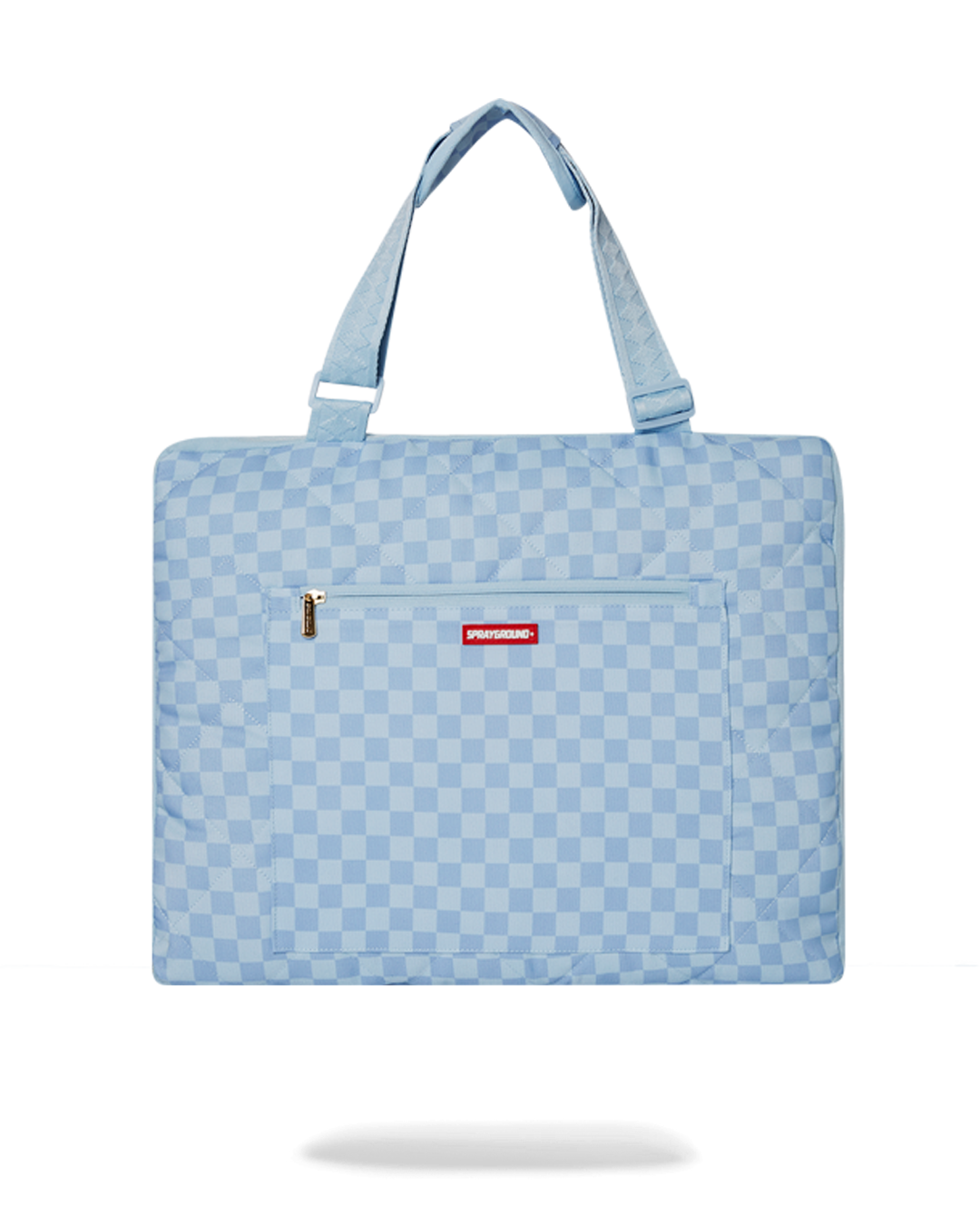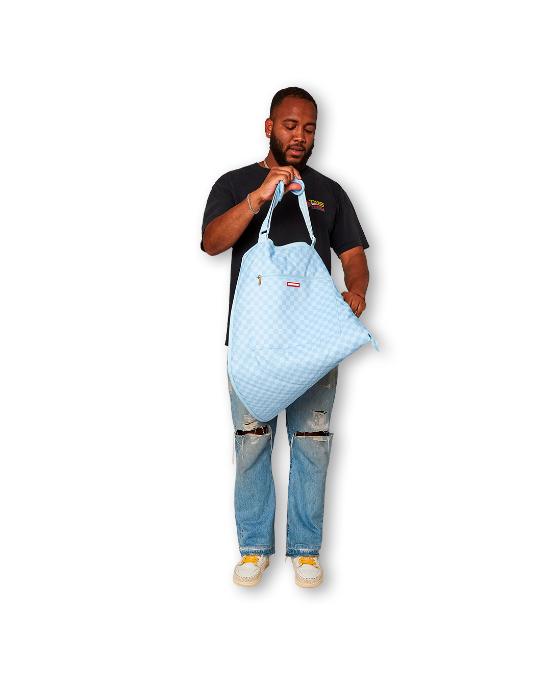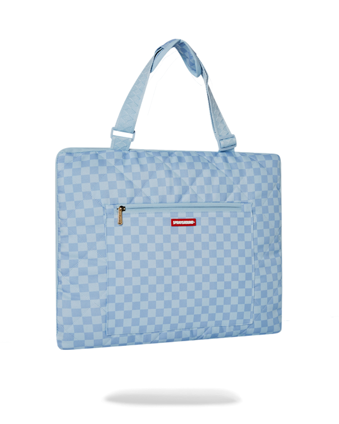 Water resistant transformable bag/beach blanket. Folds into itself for convenience.