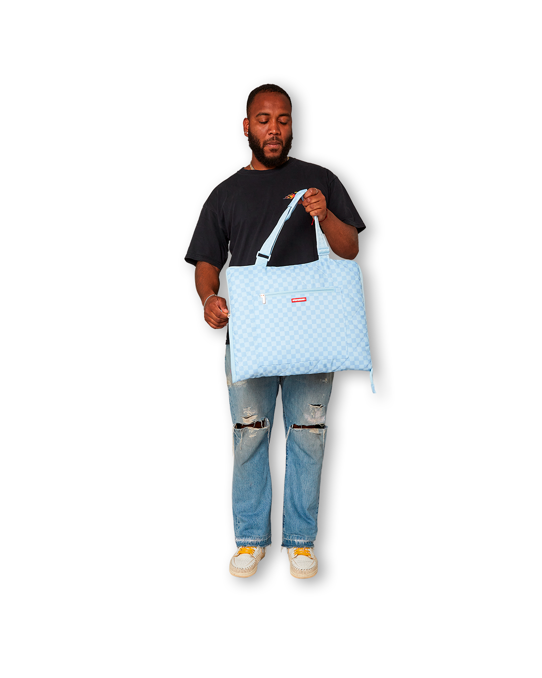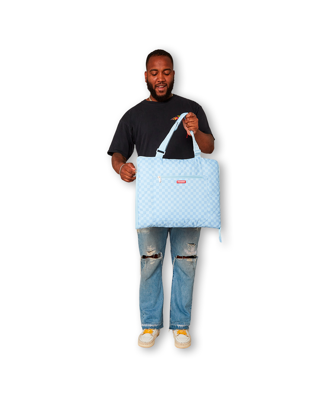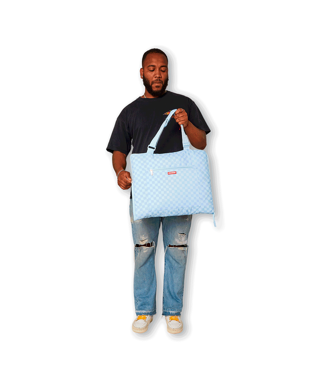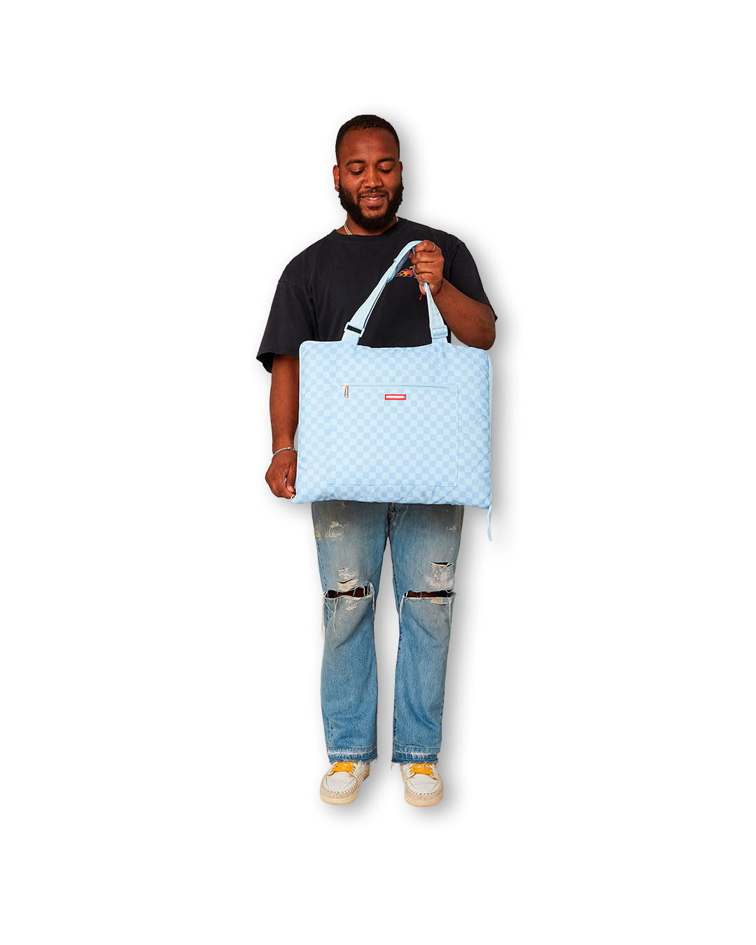 Water resistant transformable bag/beach blanket. Folds into itself for convenience.
