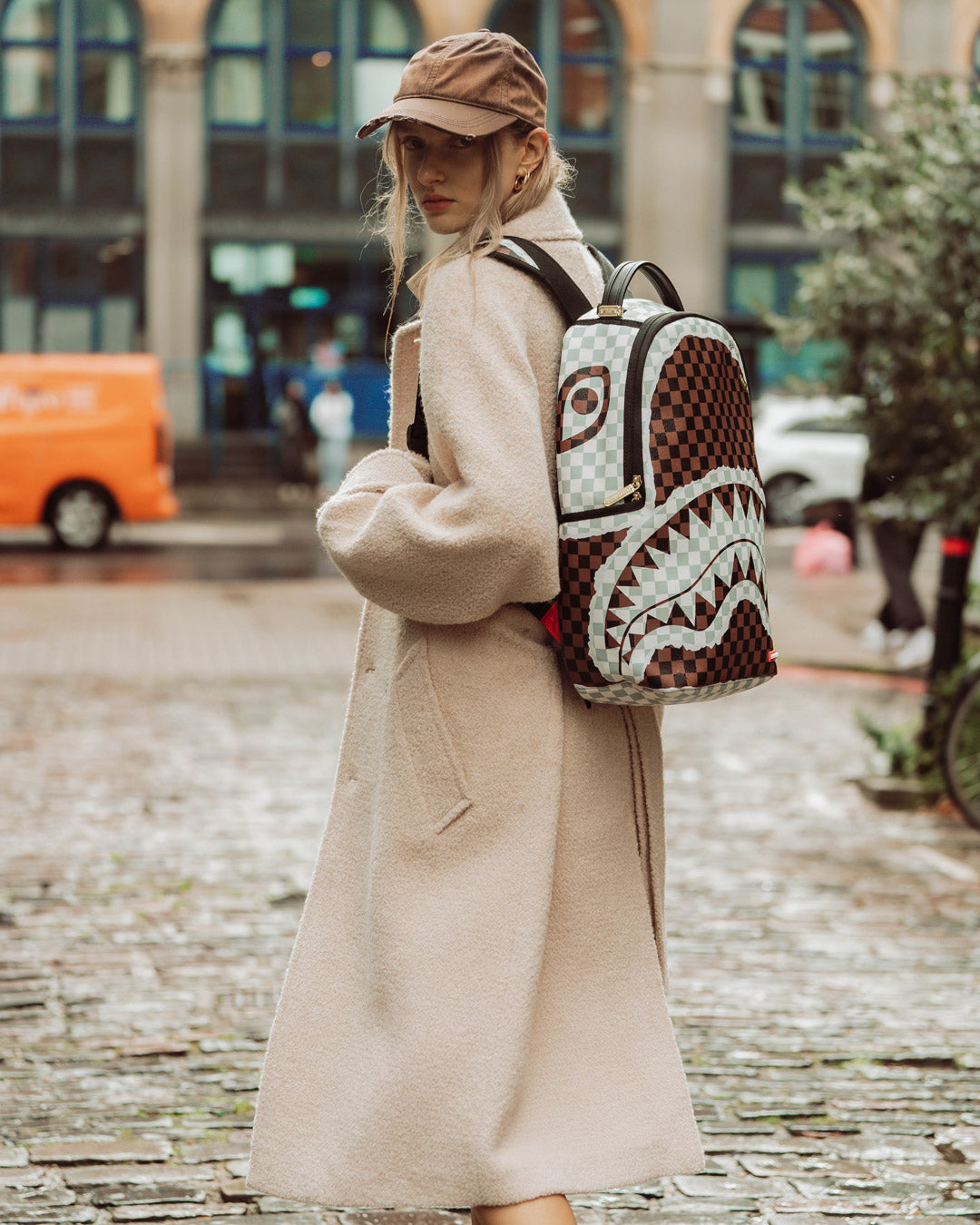 Dimensions: 18″ x 6″ x 11.5″ ? Front zipper pocket ? Side pockets ? Zippered Stash pocket ? Separate velour sunglass compartment ? Ergonomic mesh back padding ? Adjustable Straps for custom sizing ? Gold zippers with metal hardware ? Metal “Sprayground Authentic” badge ? Slide through back sleeve connects to carry-on luggage to free your hands