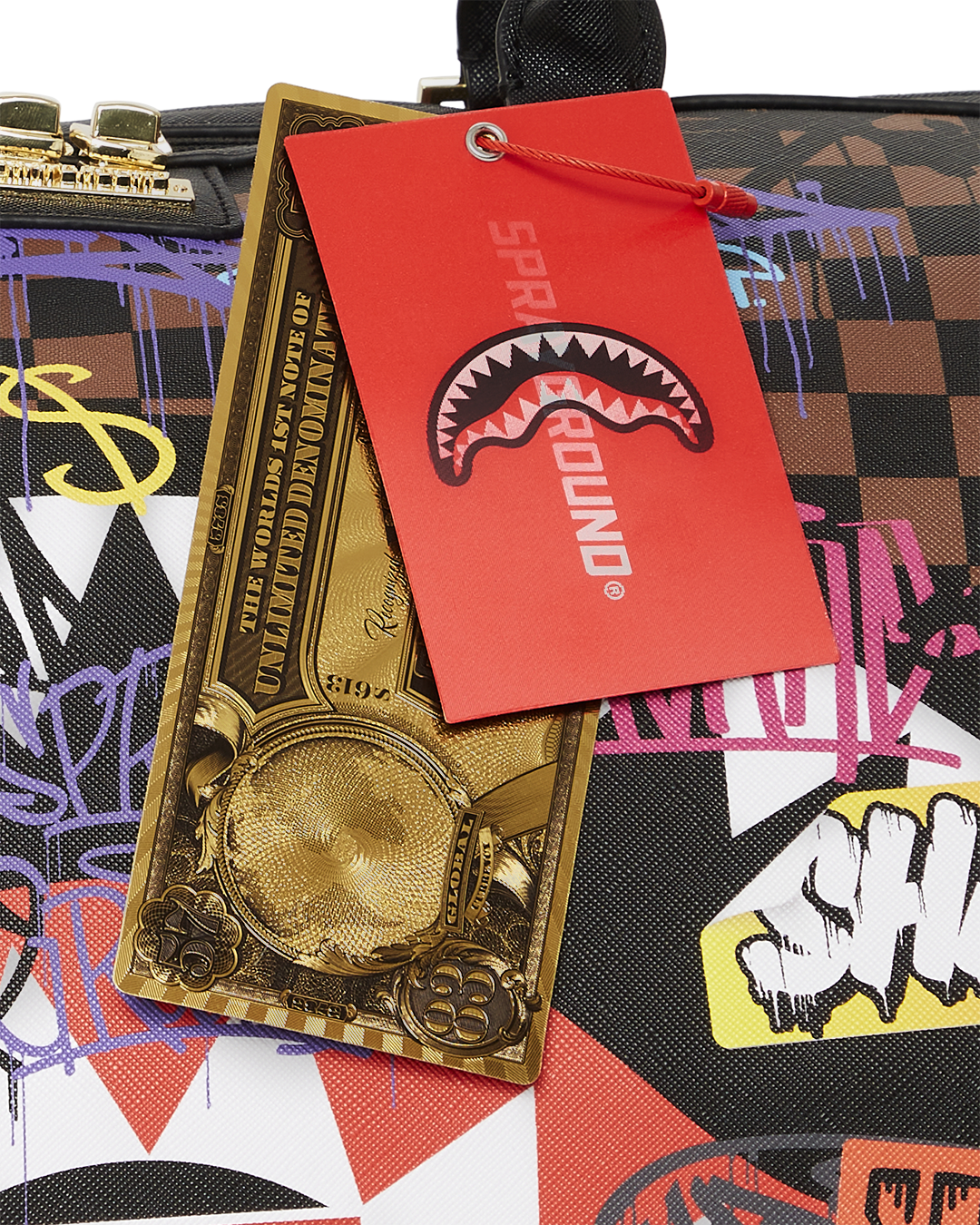 Dimensions: 20″ x 10″ x 10.75″ • Metal zipper pocket• Back Zippers •Zippered sneaker pocket • gold zippers • Adjustable Straps for custom sizing •Metal Zippers with Metal Hardware • bag of Sprayground money