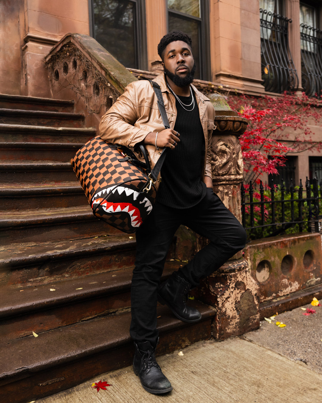 Dimensions: 20″ x 10″ x 10.75″ • Metal zipper pocket• Back Zippers •Zippered sneaker pocket • gold zippers • Adjustable Straps for custom sizing •Metal Zippers with Metal Hardware • bag of Sprayground money