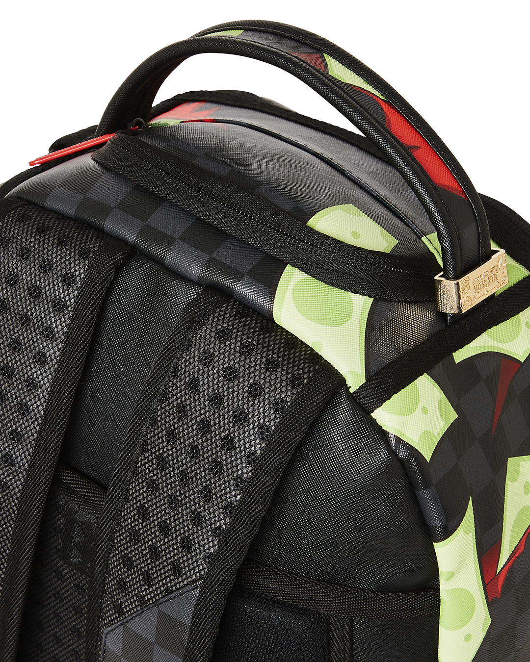 Dimensions: 18″ x 6″ x 11.5″ • Front zipper pocket • Side pockets • Zippered Stash pocket • Separate velour sunglass compartment • Ergonomic mesh back padding • Adjustable Straps for custom sizing • Gold zippers with metal hardware • Metal “Sprayground Authentic” badge • Slide through back sleeve connects to carry on luggage to free your hands