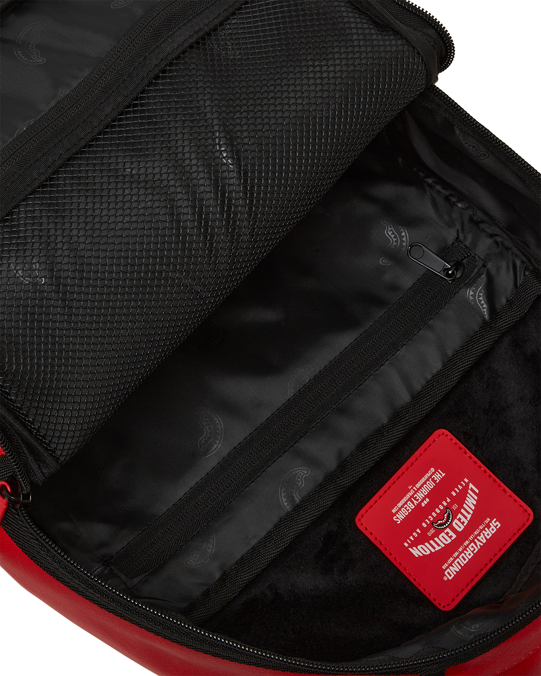 Dimensions: 18″ x 6″ x 11.5″ • Front zipper pocket • Side pockets • Zippered Stash pocket • Separate velour sunglass compartment • Ergonomic mesh back padding • Adjustable Straps for custom sizing • Gold zippers with metal hardware • Metal “Sprayground Authentic” badge • Slide through back sleeve connects to carry-on luggage to free your hands