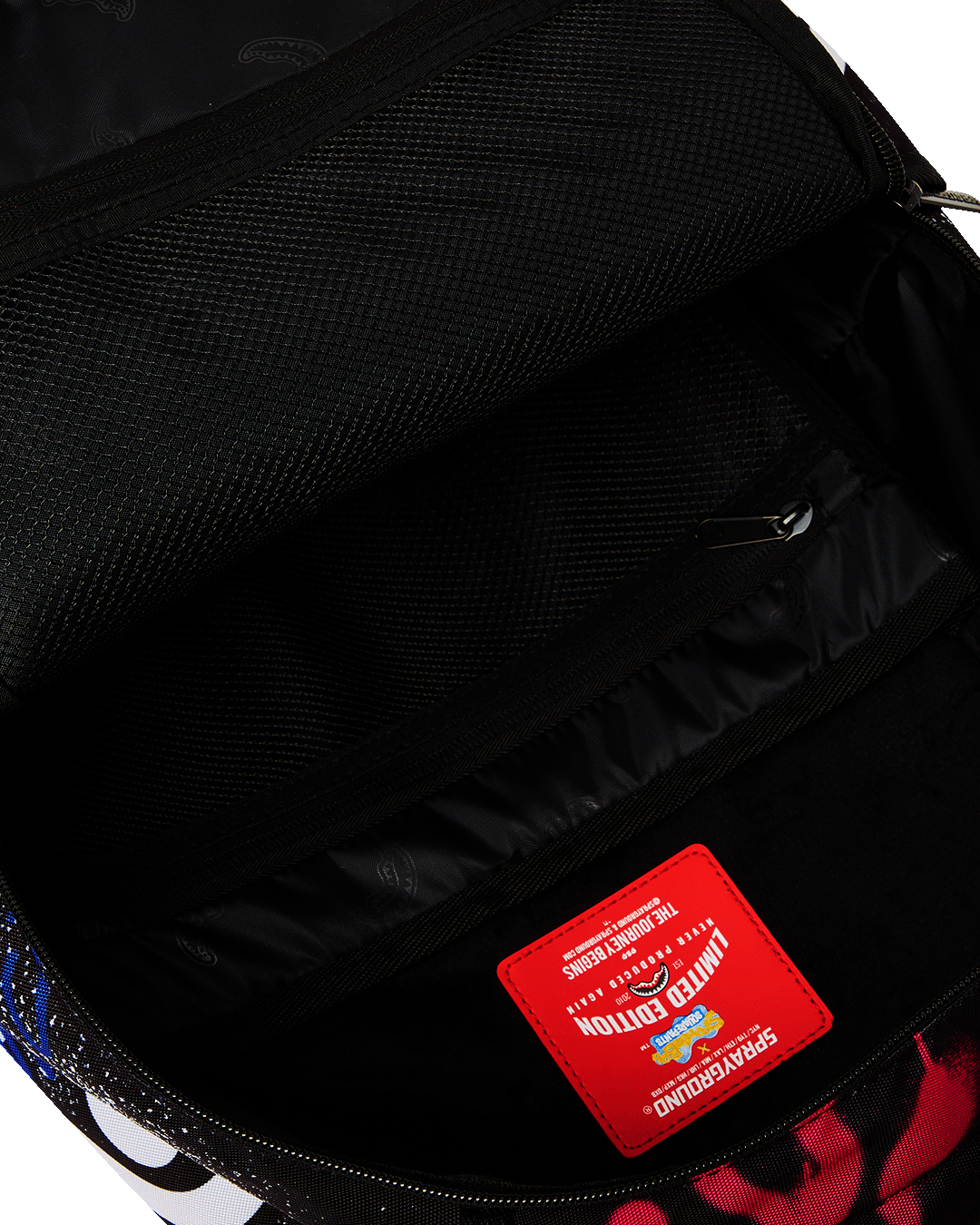 Dimensions: 18″ x 6″ x 11.5″ • Front zipper pocket • Side pockets • Zippered Stash pocket • Separate velour sunglass compartment • Ergonomic mesh back padding • Adjustable Straps for custom sizing • Gold zippers with metal hardware • Metal “Sprayground Authentic” badge • Slide through back sleeve connects to carry-on luggage to free your hands