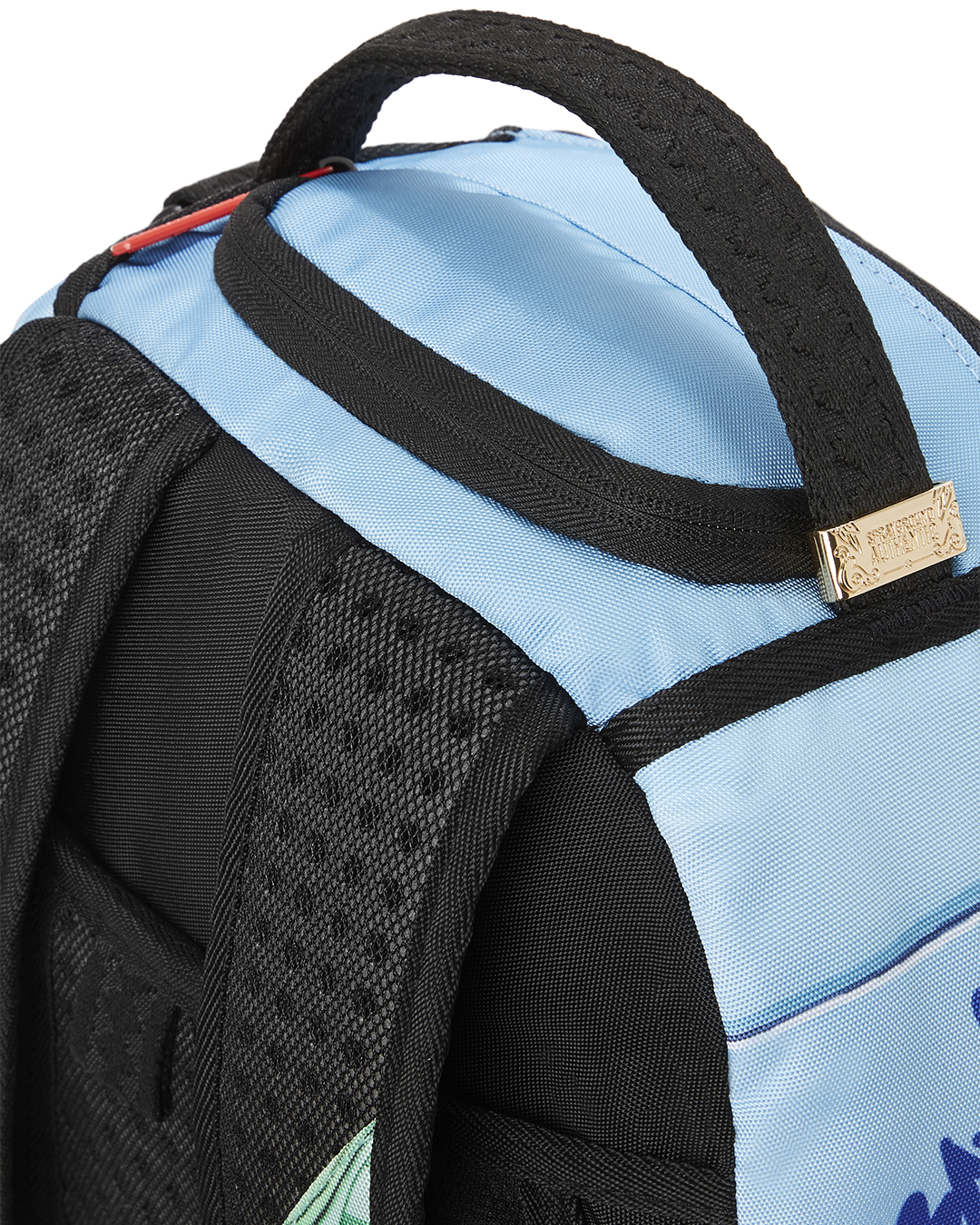 Dimensions: 18″ x 6″ x 11.5″ • Front zipper pocket • Side pockets • Zippered Stash pocket • Separate velour sunglass compartment • Ergonomic mesh back padding • Adjustable Straps for custom sizing • Green zippers with metal hardware • Metal “Sprayground Authentic” badge • Slide through back sleeve connects to carry on luggage to free your hands