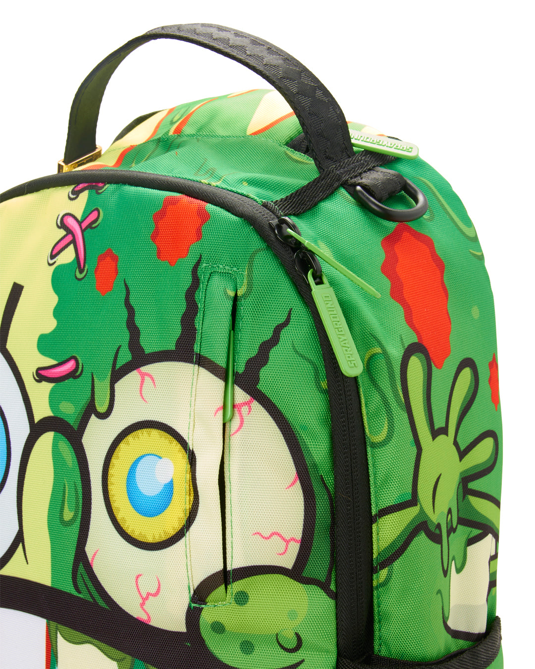 Dimensions: 18″ x 6″ x 11.5″ ∙ Front zipper pocket ∙ Side pockets ∙ Zippered Stash pocket ∙ Ergonomic mesh back padding ∙ Adjustable Straps for custom sizing ∙ Nylon Zippers with Metal Hardware ∙ Metal “Sprayground Authentic” badge ∙ Slide through back sleeve connects to Carry on luggage to free your hands