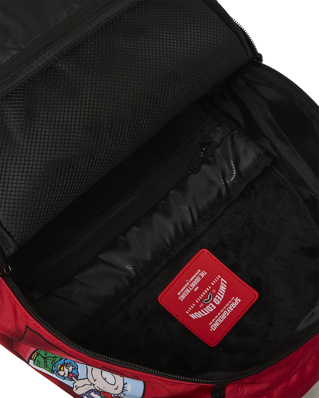 Dimensions: 18″ x 6″ x 11.5″ • Front zipper pocket • Side pockets • Zippered Stash pocket • Separate velour sunglass compartment • Ergonomic mesh back padding • Adjustable Straps for custom sizing • Gold zippers with metal hardware • Metal “Sprayground Authentic” badge • Slide through back sleeve connects to carry-on luggage to free your hands